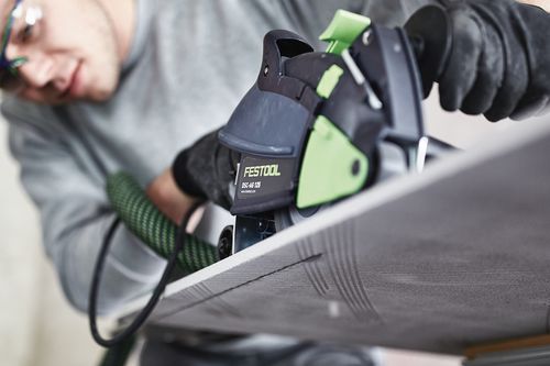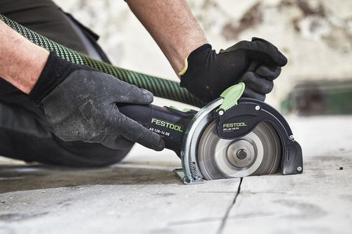 Produkteigenschaften:Präzises Trennen ohne Staub.Das Diamant Trennsystem mit einer Schnitttiefe bis 27 mm.Vorbei sind damit die Zeiten, in denen Trenn- und Schleifarbeiten eine staubige Angelegenheit waren.Der schädliche Staub wird zuverlässig abgesaugt, die Gesundheit des Anwenders geschützt und freie Sicht auf das Werkstück ermöglicht.In Kombination mit dem abgestimmten Zubehör und den Verbrauchsmaterialien entsteht so die optimale Lösung für effizientes, sauberes und präzises Arbeiten.Trennsystem mit effizienter Staubabsaugung, schützt die GesundheitFührungstisch mit leicht laufenden Rollen für sichere Führung auf dem WerkstückSichtfenster ermöglicht freie Sicht auf die SchnittstelleTauchfunktion: Schnittbeginn an jeder Stelle im Material möglichEinsetzbar auf Festool Führungsschiene für präzise SchnitteSchnelles und staubarmes Trennen mineralischer MaterialienAusschnitte für Türen/Fenster, Dehnfugen im Bodenbereich, Nuten für LeitungenTechnische Daten:Leistungsaufnahme 1400 WLeerlaufdrehzahl 3500 - 11000 min?¹Scheiben-Ø 125 mmAbstand seitlich 32.00 mmAbstand vorne 78.00 mmSchnitttiefe ohne/mit Führungsschiene 27/23 mmAnschluss Staubabsaugung Ø 36/27 mmProduktgewicht ohne Zubehör 4.50 kgAntriebsart NetzLieferumfang:1x Festool Diamant Trennsystem DSC-AG 1251x Absaughaube DCC-AG 1251x Diamanttrennscheibe ALL-D125 Premium1x Führungsschiene FS 800/21x Systainer SYS3 M 337