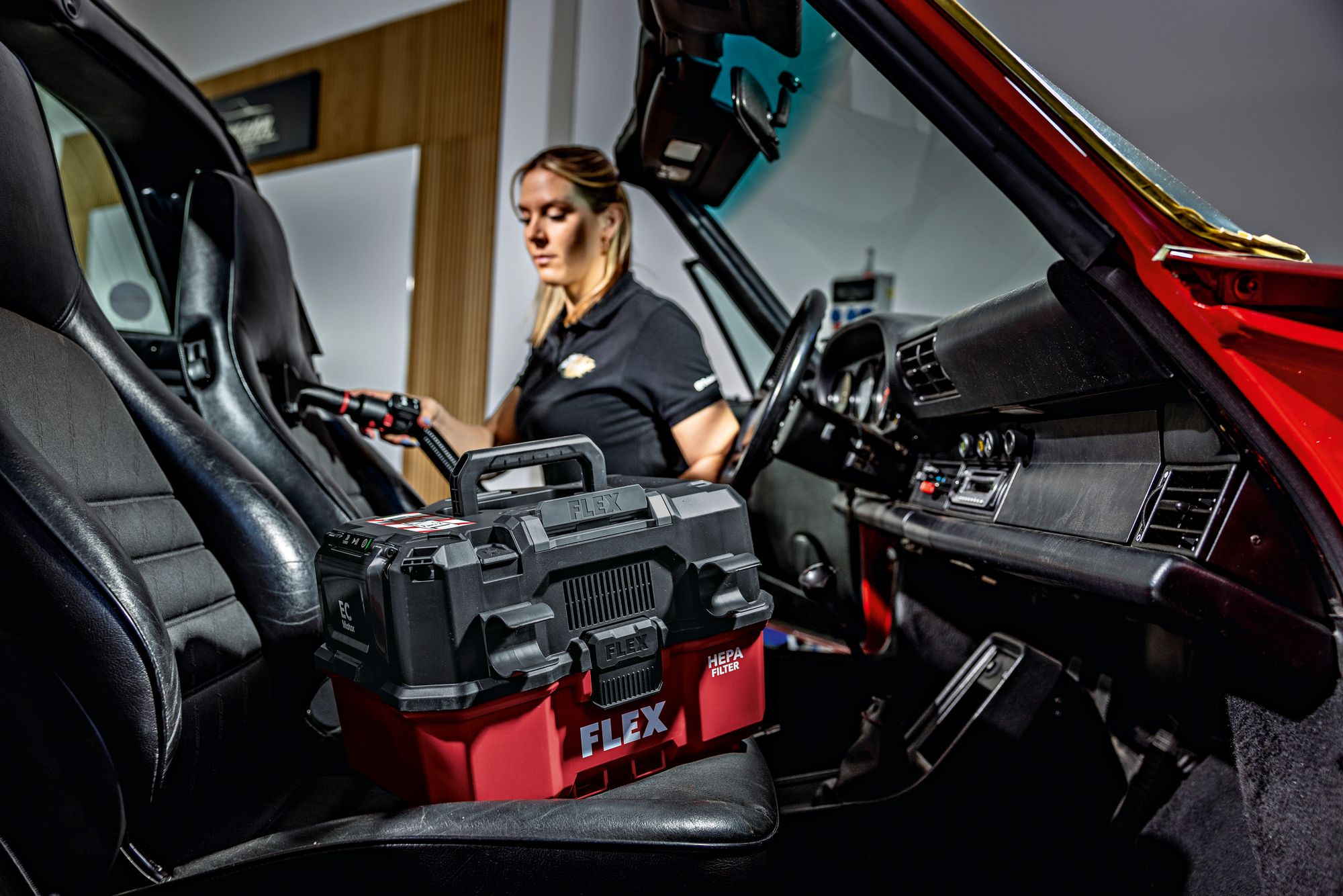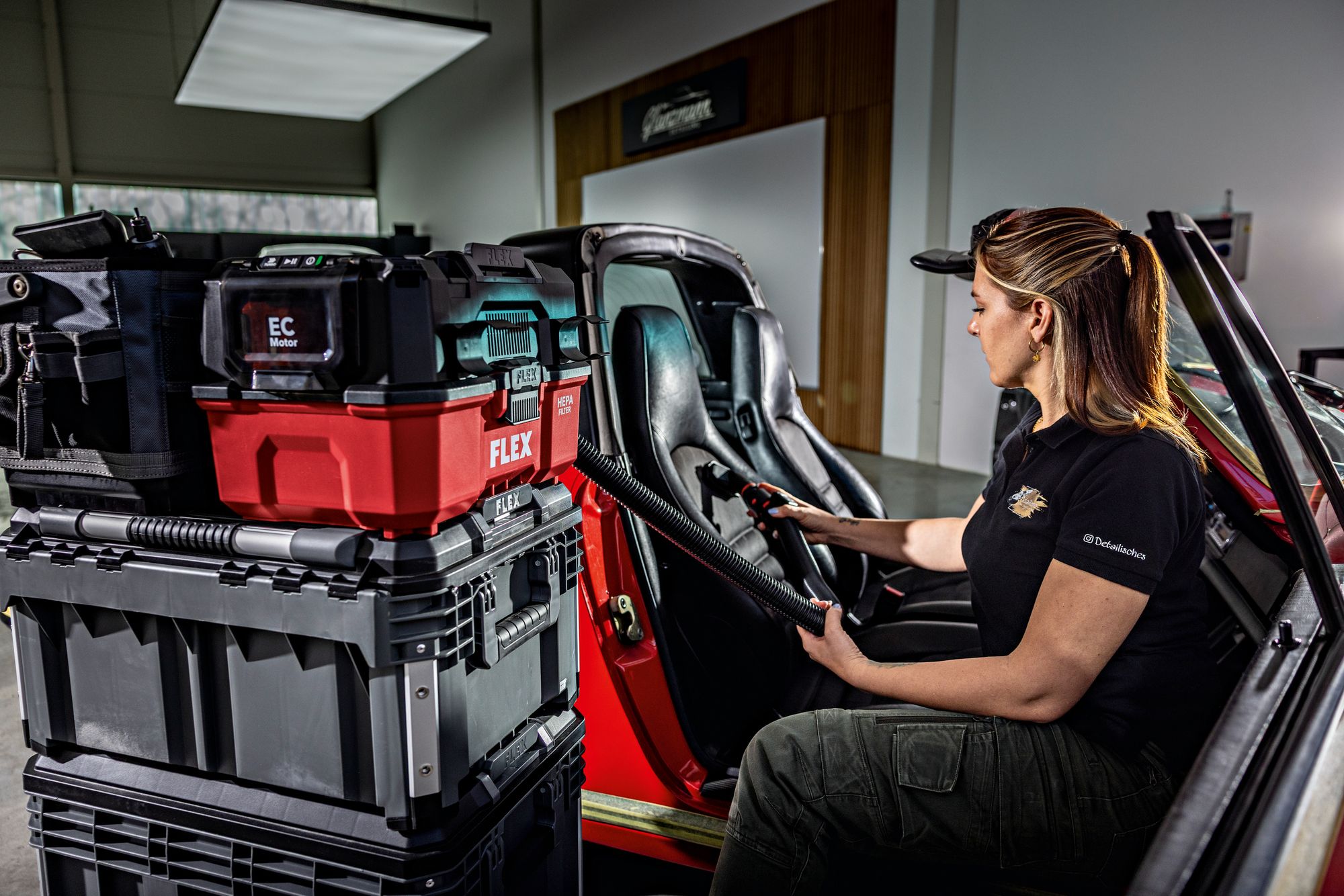 Produkteigenschaften:Sehr kompakter, handlicher und leichter Sauger mit Tragegriff und -gurt für den mobilen Einsatz. Passt durch die kompakte Bauweise in jedes FahrzeugEntfernt mühelos Ablagerungen, hartnäckige Verschmutzungen und WasserMit Funk-Fernbedienung für den Anschluss von Elektrowerkzeugen. Das Aktivieren des Saugers erfolgt per Knopfdruck oder über den Vibrations-SensorDurch Betätigung der manuellen Filterabreinigung wird das Filterelement durch einen gezielten Luftstoß von abgelagertem Staub befreitOptimierte Abreinigung und erhöhter Füllgrad des Containers durch RundfilterDie Hochleistungsturbine sorgt für hohe Saugleistung und hohen Unterdruck. Dadurch entsteht ein hervorragendes AbsaugergebnisDer Akku-Sauger ist kompatibel mit dem FLEX Aufbewahrungs- und Transportsystem STACK PACK. Damit lässt er sich mit weiteren Boxen für Werkzeuge und Zubehör problemlos zur Baustelle transportieren. Ineinandergreifende Schnellverbindungsverschlüsse bieten schnelle, flexible und mühelose Verbindung der BestandteileMit Kompaktschlauch Ø 32 mm mit einer Länge von 0,5 m ausziehbar bis 1,5 m. Sehr handlich, Sauger läßt sich einfach transportierenMit integrierter Zubehör Aufbewahrung durch ein separates Fach sowie Halterungen am Saugkopf für den SchlauchBürstenloser Motor mit höherem Wirkungsgrad und längerer LebensdauerFLEX Akku-System: Betrieb mit allen FLEX 18 V Akkupacks. Lieferung ohne Akku, ohne Ladegerät
