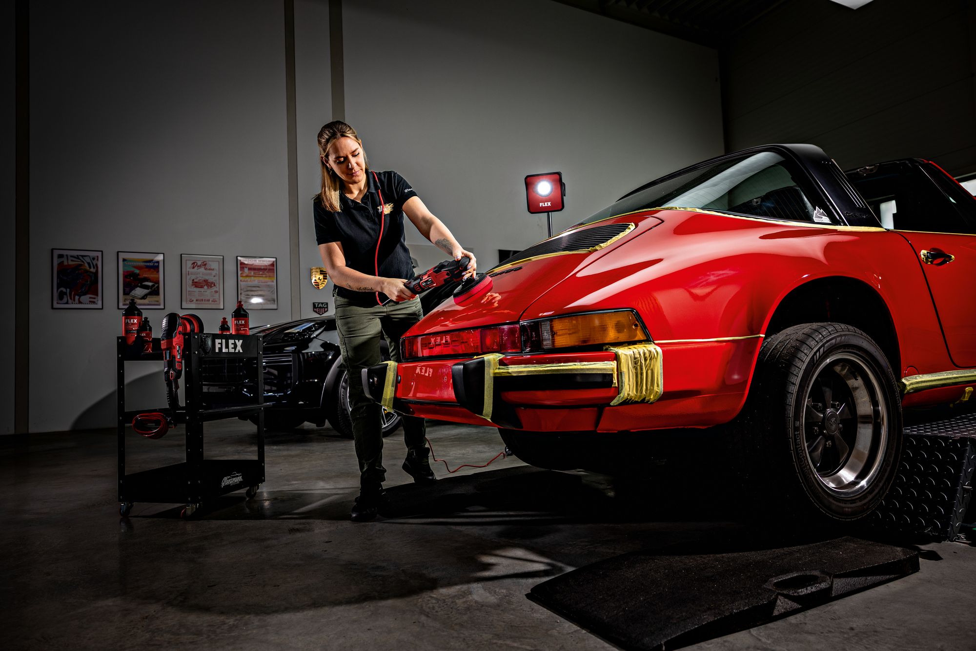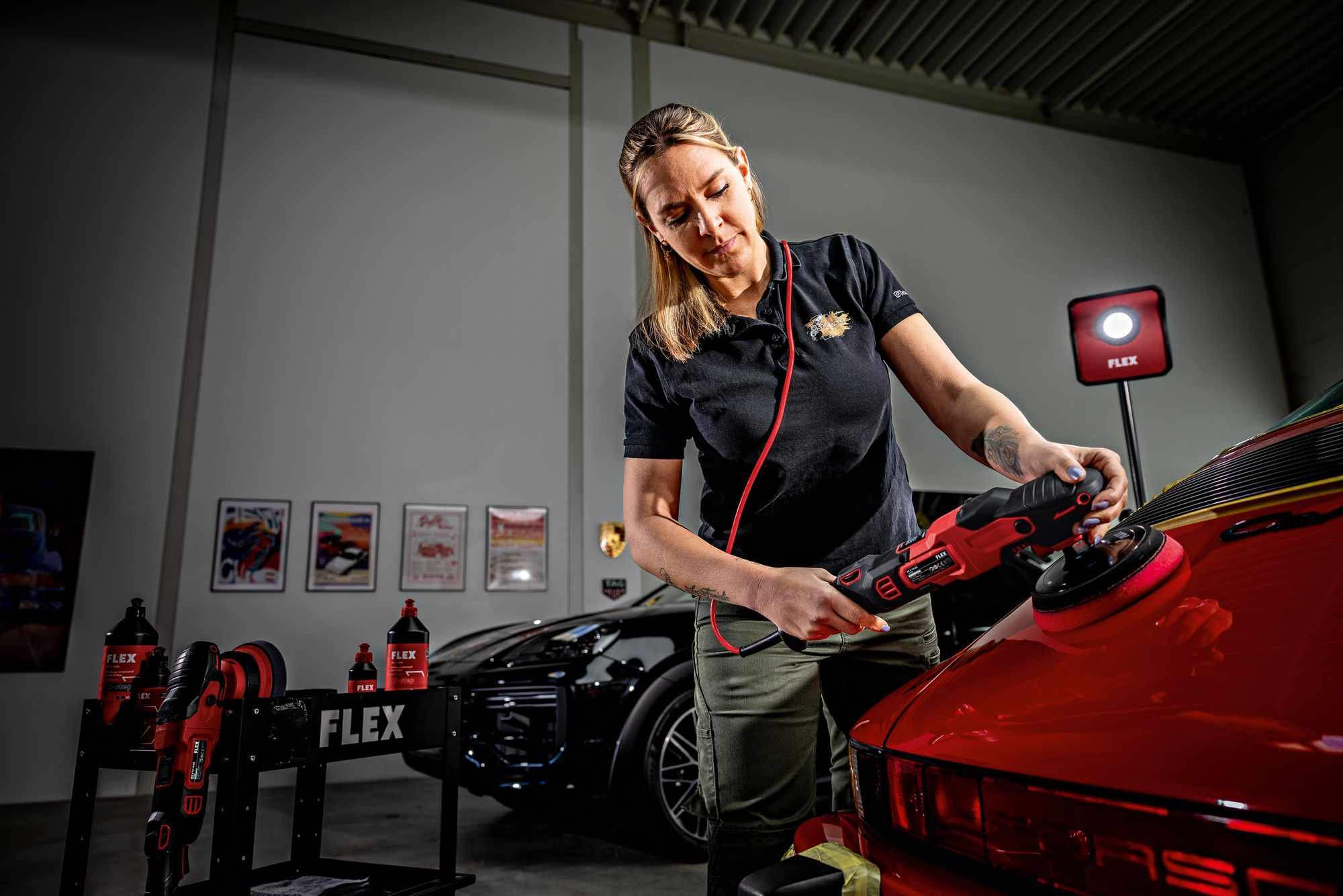 Produkteigenschaften: Neue Generation bürstenloser Motoren mit hohem Wirkungs- und Leistungsgrad Mikroprozessor-Elektronik: stufenlose Drehzahlvorwahl, Drehzahlkonstanthaltung mittels Tachogenerator, Überlastungsschutz, Wiederanlaufsperre und Temperaturüberwachung Gasgebeschalter für einen langsamen und gefühlvollen Start und Arretierung für Dauerlauf Extrem flacher Getriebekopf reduziert den Abstand zur Oberfläche. Dadurch lässt sich die Maschine in jeder Position perfekt führen Neu entwickeltes Hochleistungsgetriebe für maximale Geräusch- und Vibrationsreduktion Neu positionierte Spindelarretierung auf der Unterseite ermöglicht intuitiven Tellerwechsel und verhindert versehentliche Betätigung Idealer Drehzahlbereich für die Bereiche Automotive, Maritim und Aviation Perfekt geeignet zur Entfernung tiefer Kratzer und zur Aufbereitung stark verwitterter Lacke Maximale Abtragsleistung im FLEX 2-Step-System, mit dem roten Schwamm und roter Politur Ergonomisch geformte Griffbereiche mit Softgrip zur perfekten Führung auf der Oberfläche Mit gummierter Ablagefläche für sicheres Ablegen Einfache Drehzahlverstellung über beidseitig erreichbares Drehzahlwahlrad mit Rastpunkten