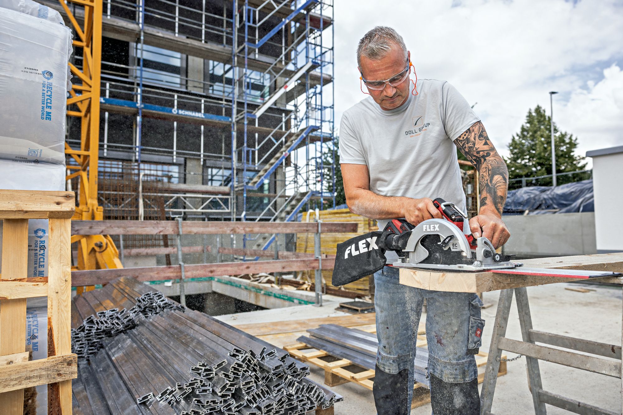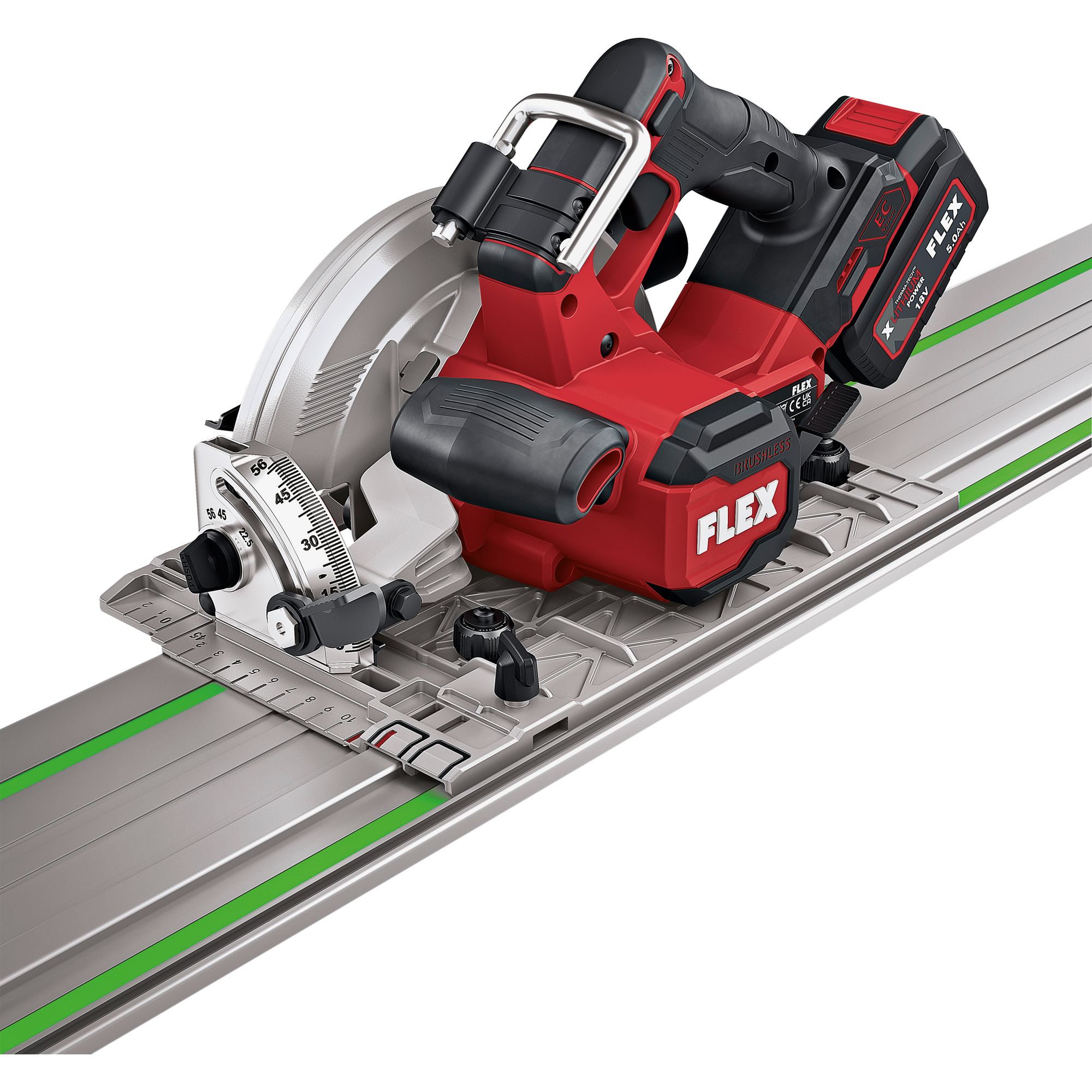 Produkteigenschaften:Ideal für klassische Anwendungen in Trockenbau und Sanierung. Z.B. für Sägeschnitte durch Gips-, Betonfaserplatten, Holzwerkstoffe wie Schaltafeln und Span- oder OSB-PlattenWinkelskala von 0° bis 56°. Mit Winkelvorjustierung von 22,5° / 45° und 56°. Leicht ablesbar und exakt einstellbar durch langen SpannhebelHochwertige Schutzhaube und Führungsplatte aus Magnesium-DruckgussGerade, splitterfreie und krafvolle Schnitte durch den Einsatz von Führungsschienen. Die Führungsschienennuten befinden sich direkt in der Grundplatte. Kompatibel mit FLEX und anderen SystemenBürstenloser Motor mit höherem Wirkungsgrad und längerer Lebensdauer18 V EC-Motor mit Überlastungsschutz und TemperaturüberwachungElectronic Management System (EMS) schützt die Maschine, verlängert die Lebensdauer und erhöht die EffizienzMotorbremse stoppt das Sägeblatt in 2 SekundenIntegriertes LED-Licht zur optimalen Ausleuchtung des Arbeitsbereiches.Spindelarretierung: für schnellen SägeblattwechselMit Metallhaken für eine flexible BefestigungAnschlussmöglichkeit für externe Staubabsaugung mit Ø 27, 36 mmSpänefangsack für staubreduziertes Arbeiten, einfach zu entleerenLED Akku-KapazitätsanzeigeFLEX Akku-System: Betrieb mit allen FLEX 18 V Akkupacks. Lieferung ohne Akku, ohne Ladegerät
