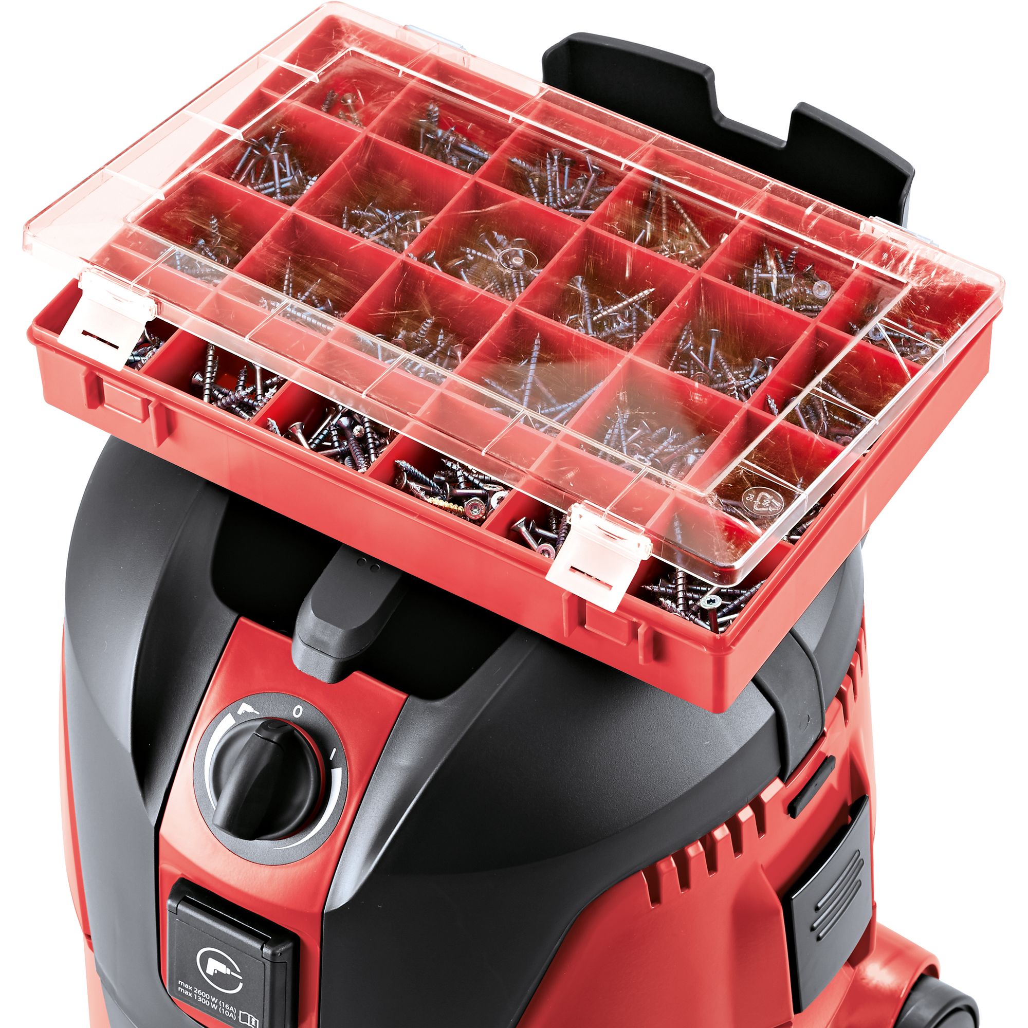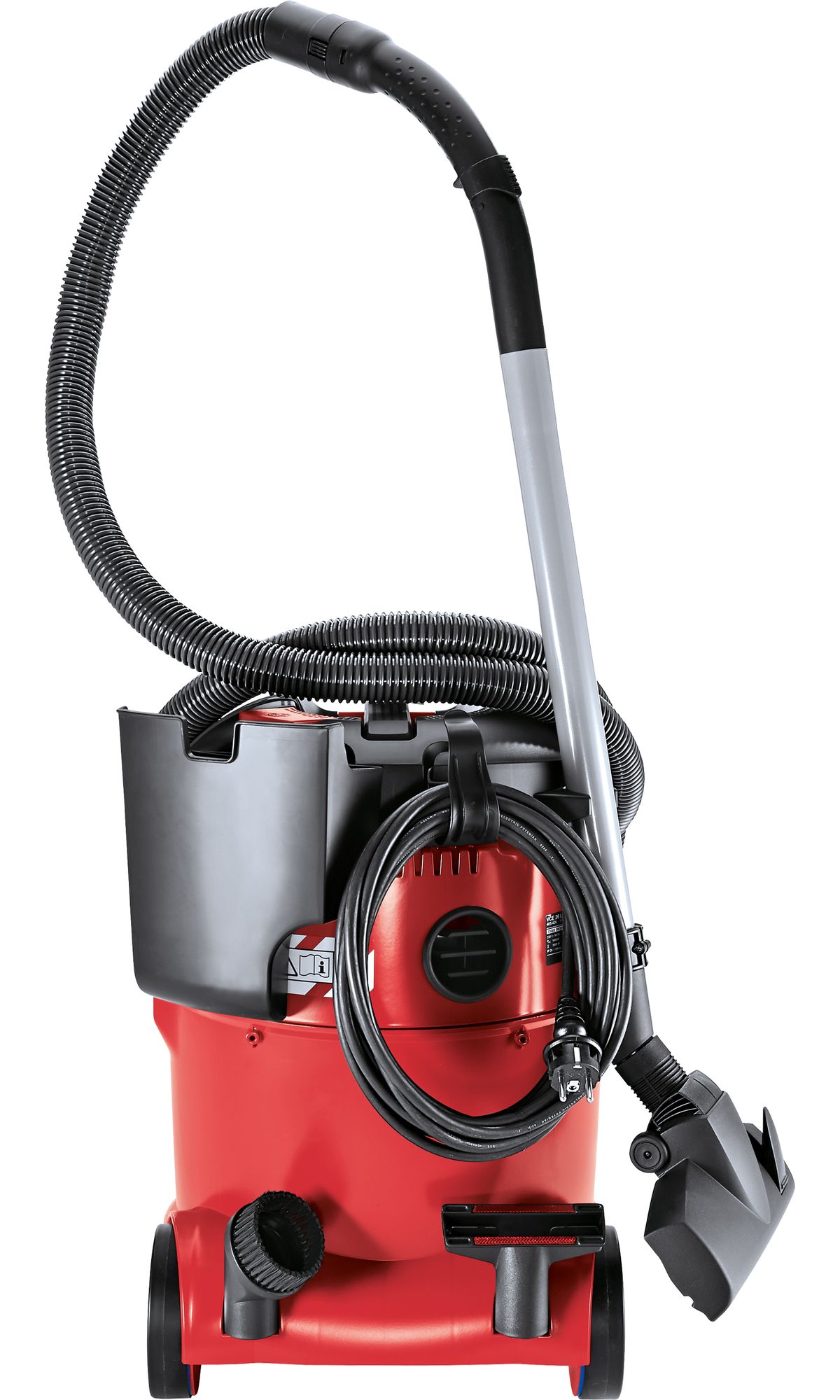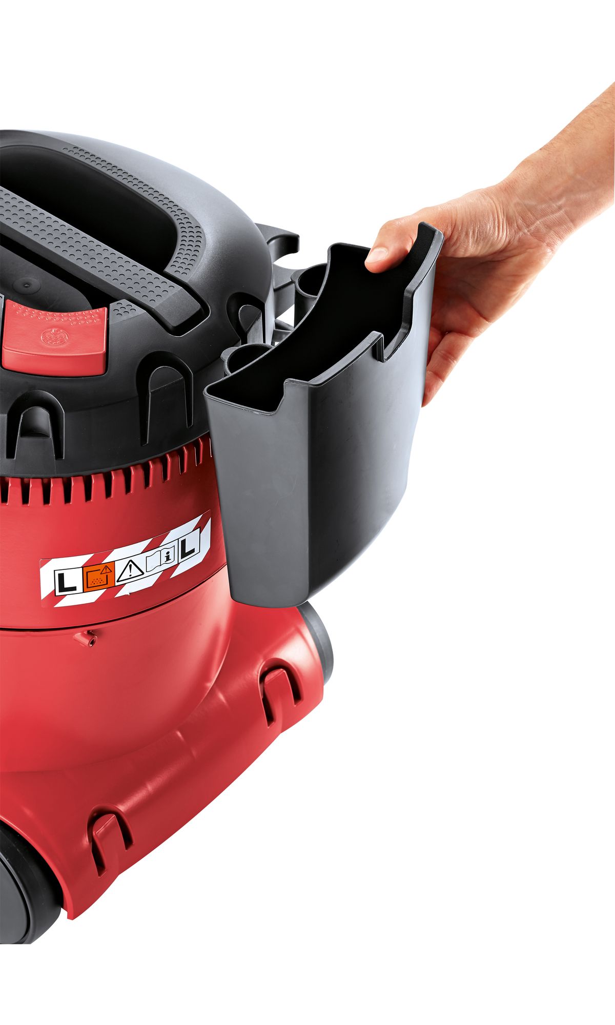 Produkteigenschaften: Handlicher und kompakter Sauger, einfach zu handhaben und leicht zu transportieren Die Hochleistungsturbine sorgt für hohe Saugleistung und hohen Unterdruck. Dadurch entsteht ein hervorragendes Absaugergebnis Durch Betätigung der manuellen Filterabreinigung wird das Filterelement durch einen gezielten Luftstoß von abgelagertem Staub befreit Füllstandsüberwachung, keine Störungen beim Aufsaugen von Flüssigkeiten durch eingebautes Schwimmerventil Mit Gerätesteckdose und elektronischer Ein-/Ausschaltautomatik Der Sanftanlauf vermeidet Spannungsspitzen beim Start des Saugers und die Abschaltverzögerung (5 Sekunden Nachlauf) entleert Staubreste im Saugschlauch Saugkraftregulierung, dem Werkzeug angepasste Saugkraft durch stufenlose Regulierung Mit Zubehördepot für Saugdüsen und Saugrohre auf der Rückseite Ausgestattet mit großen Rädern und zwei schwenkbaren Lenkrollen Geeignet für erhöhte Beanspruchung nach EN 60335-2-69 für professionelle Anwendungen. Optimal für Reinigungsarbeiten in Büros, Lagerräumen, Werkstätten und Fahrzeugen. Für Absaugarbeiten liegt der Einsatzschwerpunkt bei kleineren Elektrowerkzeugen z.B. Schwing-, Delta-, Exzenterschleifer, Stichsägen... Werkzeuge bei denen es zu geringerem Staubanfall kommt Ausgestattet mit einem Filtersack aus hochreißfestem Vlies für eine optimale Befüllung. Die abgesaugten Stäube lassen sich problemlos entsorgen Sicherheitssauger Klasse L, geeignet für alle Stäube mit AGW-Werten > 1 mg/m³