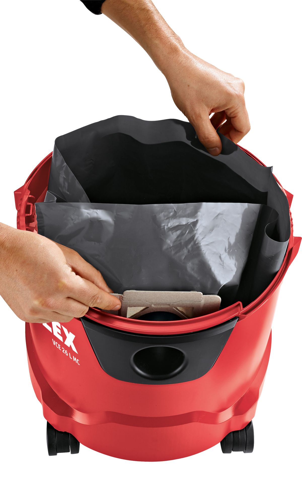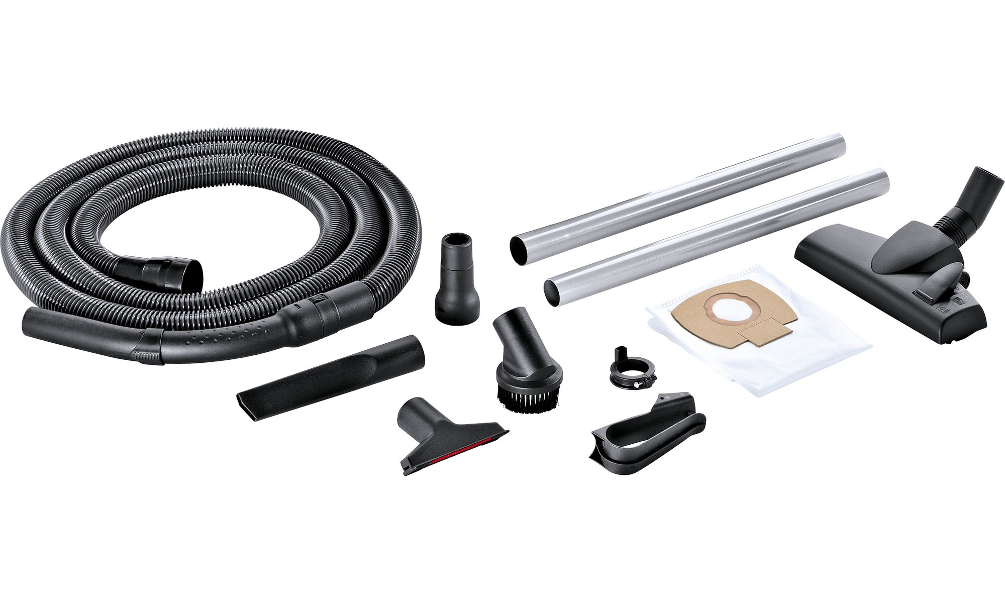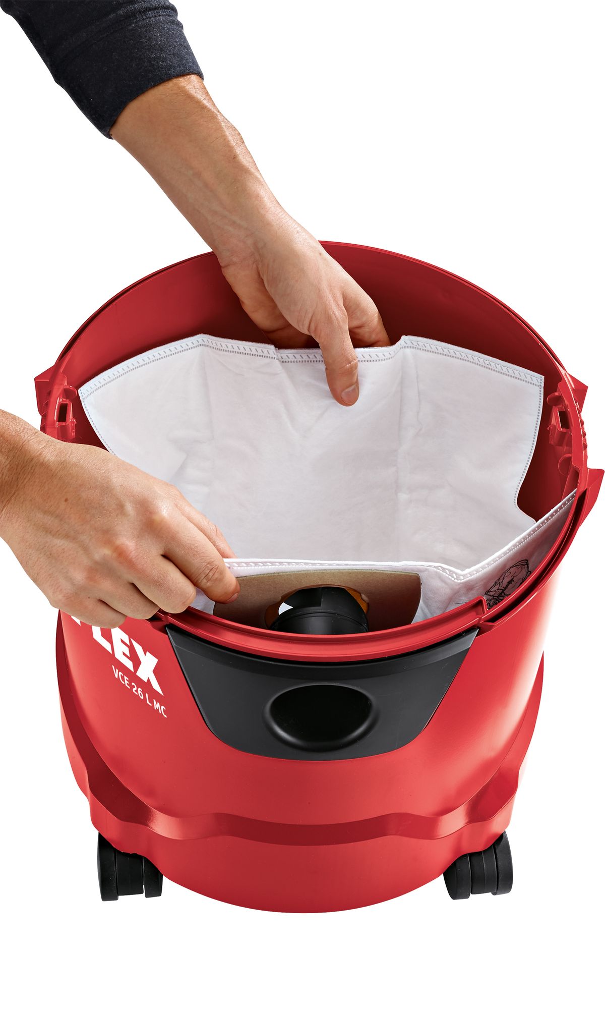 Lieferumfang: 1x Flex Sicherheitssauger VCE 26 L MC 1x Saugschlauch (385484) 1x Filterelement (385085) 2x Verlängerungsrohr 1x Kombi-Bodendüse (385565) 1x Rundbürste (385646) 1x Fugendüse (385530) 1x Vlies-Filtersack (502235) 1x Saugrohrhalter (410993) 1x Netzkabelhaken (410705) 1x Flexibles Schlauchband für Schlauchhalterung (411108) 1x Zubehörbox mit Halterung (411124) 1 Adapter (385506)