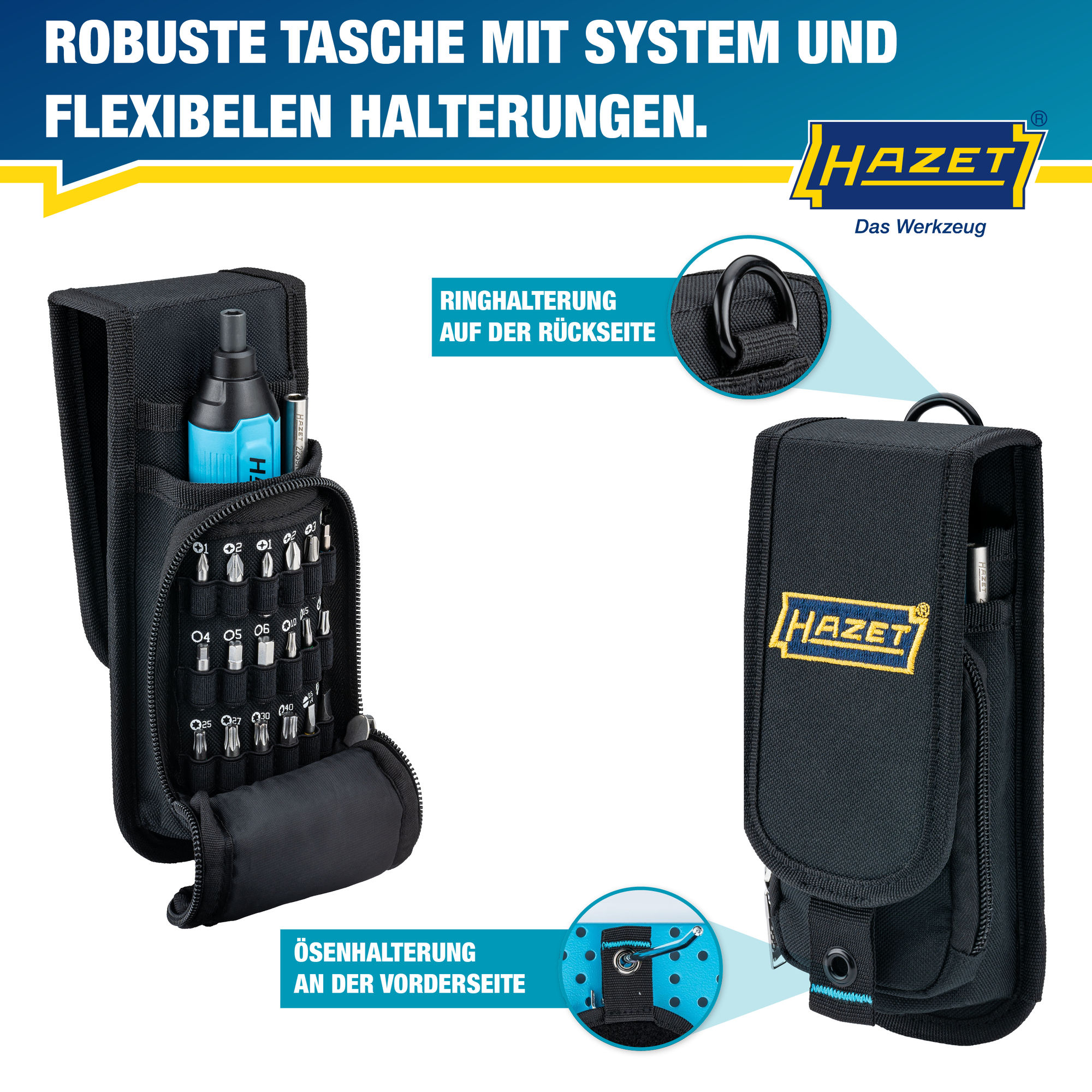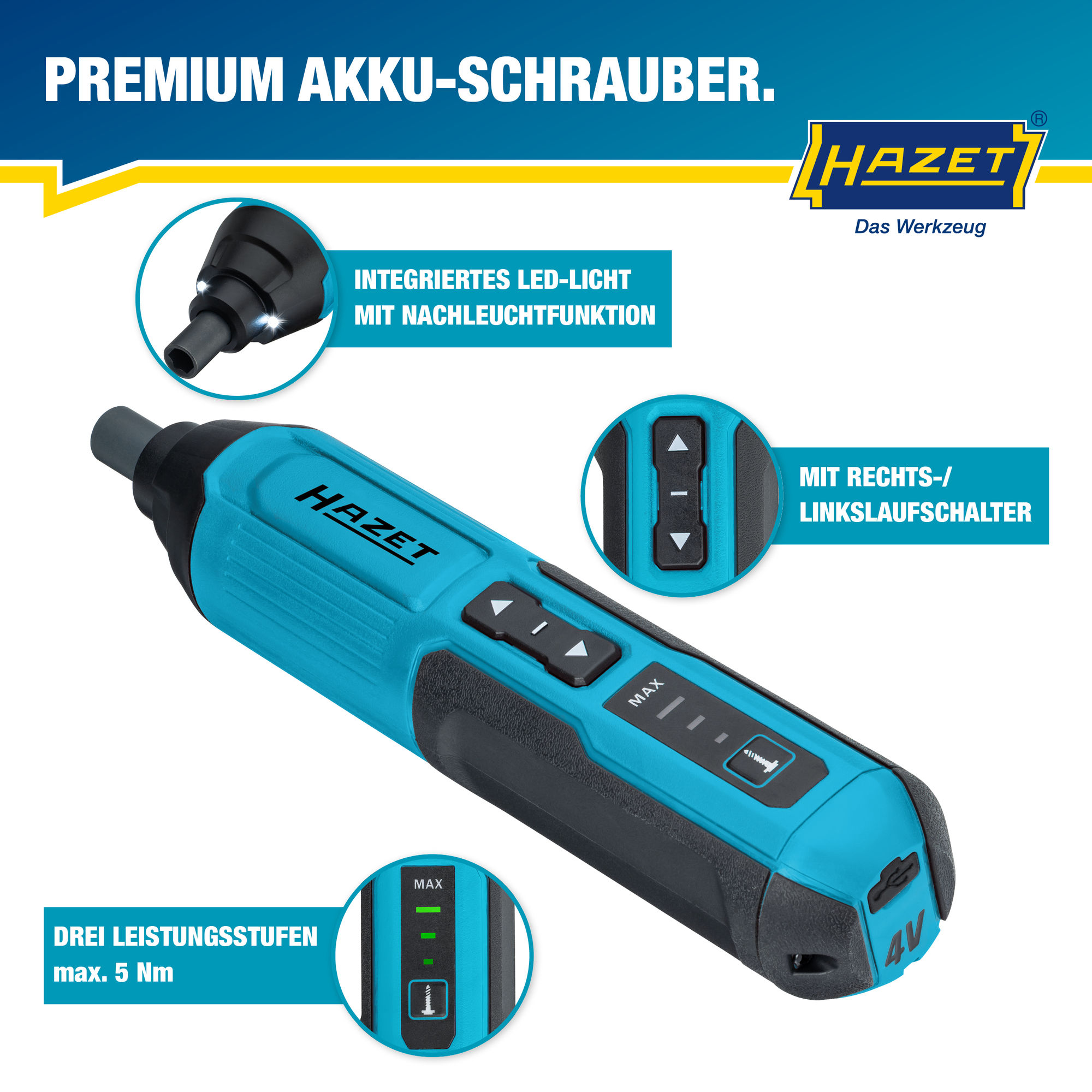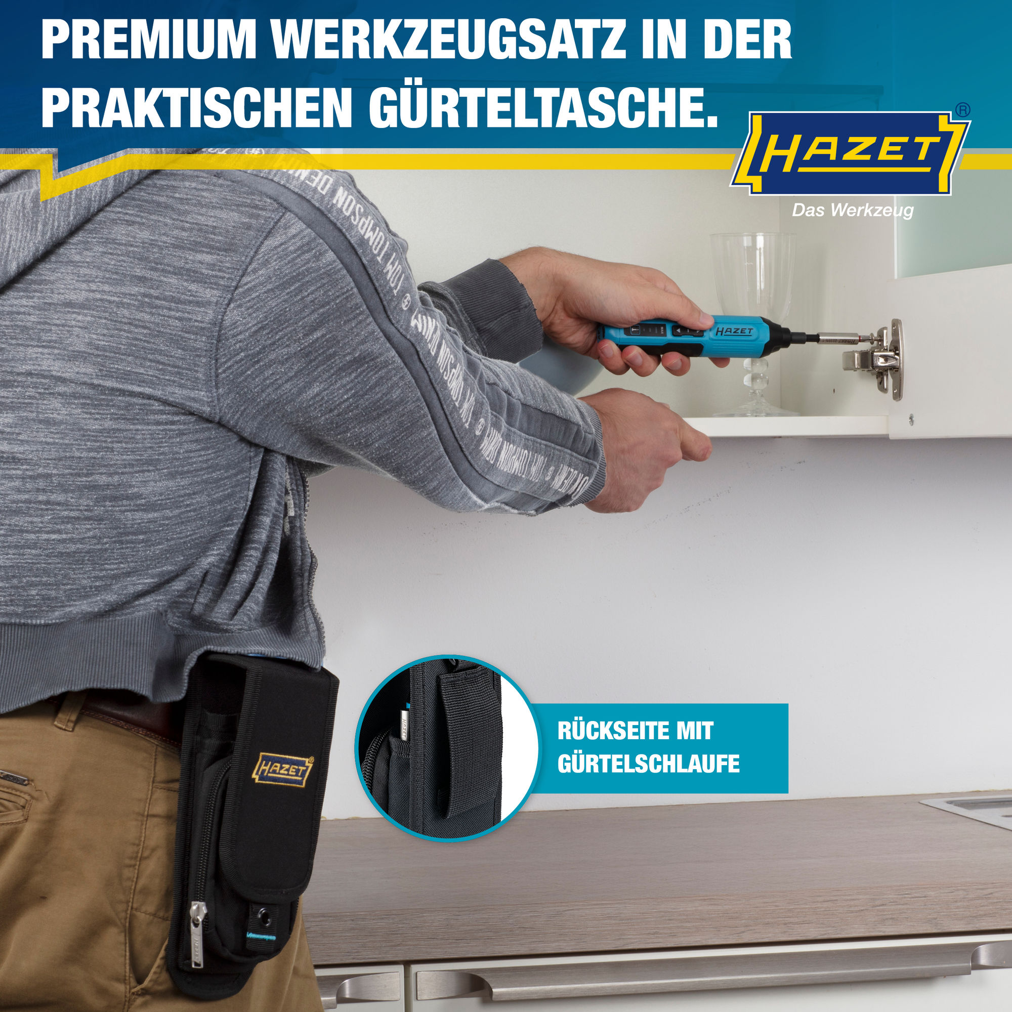 Lieferumfang1x Hazet ¼″ Akku Stabschraubendreher1x ¼″ Adapter1x USB-C Ladekabel (1 m)18x Schraubendreher-Bits (25 mm):TORX: T10, T15, T20, T25, T27, T30, T40PH: PH1, PH2, PH3PZ: PZ1, PZ2Schlitz: 0,5 x 4 / 1,2 x 6,5 mmInnensechskant: 3, 4, 5, 6 mm1x Schlüsselanhänger1x Vollstahl Flaschenöffner1x Tasche zur Aufbewahrung