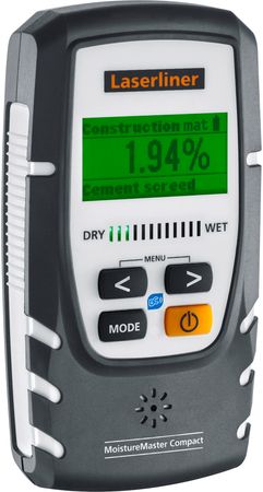 Produkteigenschaften:Das elektronische Materialfeuchtemessgerät dient dem zerstörungsfreien Lokalisieren und Beurteilen von Feuchtigkeitsverteilungen in Wand, Boden oder DeckeLeckage-Orter können sich bei der Schadenortsbesichtigung schnell einen Überblick über Schwere und Verteilung der Schäden im Gebäude verschaffenNach der Feuchtigkeitsmessung am schadhaften Bereich können Anwender den Index-Wert mit dem Referenzwert vergleichen, den sie zuvor an einem nicht von Feuchtigkeitsschäden betroffenen Bereich gemessen habenDies erlaubt Rückschlüsse darüber, welche Bereiche des Gebäudes in welchem Ausmaß von Feuchtigkeit betroffen sindEinfaches Erfassen und Beurteilen von Feuchtigkeitsverteilungen in Wand, Boden und DeckeSchneller Überblick über Ausmaß und Schwere der Feuchtigkeitsschäden im Rahmen der SchadenortsbesichtigungMaterialkennlinien für Zementestrich, Anhydritestrich und Beton in CM-% und Masse-%Effizientes Lokalisieren des Gebäudebereichs mit den erheblichsten FeuchtigkeitsschädenZerstörungsfreies kapazitives MessverfahrenGut ablesbares Display mit Angabe von Referenz-, Maximal- und Index-WertAbschaltbarer Feuchte-Indikator: Akustischer Alarm und 12-stellige LED-Anzeige mit konfigurierbarem GrenzwertKlima-Sensor liefert weitere relevante Parameter zur Analyse von Schaden und Feuchtigkeitsverhältnissen: Luftfeuchte, Umgebungstemperatur und berechneter TaupunktPraktisches automatisches Festhalten des letzten Messwertes in der AnzeigeEinfache Übertragung von Messdaten über Digital Connection-Schnittstelle auf das HandyEnergiesparende Selbstabschaltung bei NichtgebrauchRobustes, gummiertes GehäuseTechnische Daten:Nass-/Trocken-Indikator JaMax/Ref JaAuto-Hold JaDatenübertragung JaCM-%-Umrechnung JaMasse-%-Umrechnung Janumerische Digitalanzeige JaLED-Mehrfarbsignalisierung JaUmgebungstemperatur JaLuftfeuchte JaTaupunkttemperatur JaMessbereich Umgebungstemperatur -10°C ... 60°CGenauigkeit Umgebungstemperatur ± 1°CMessbereich Luftfeuchte (relativ) 20% ... 90%Genauigkeit (absolut) Luftfeuchte (relativ) 20% … 80% (± 3%)<20% und >80% (± 5%)Messgröße Materialfeuchte (kapazitiv)LuftfeuchteUmgebungstemperaturTaupunkttemperaturSchnittstelle Digital ConnectionStromversorgung 3 x 1,5V LR03 (AAA)Betriebsdauer ca. 55 Std.Temperatur (Arbeitsbedingungen) 0°C … 50°CLieferumfang:1x Laserliner Materialfeuchtemessgerät Elektronisch MultiWet-Finder Plus1x Batterien1x Tragekoffer