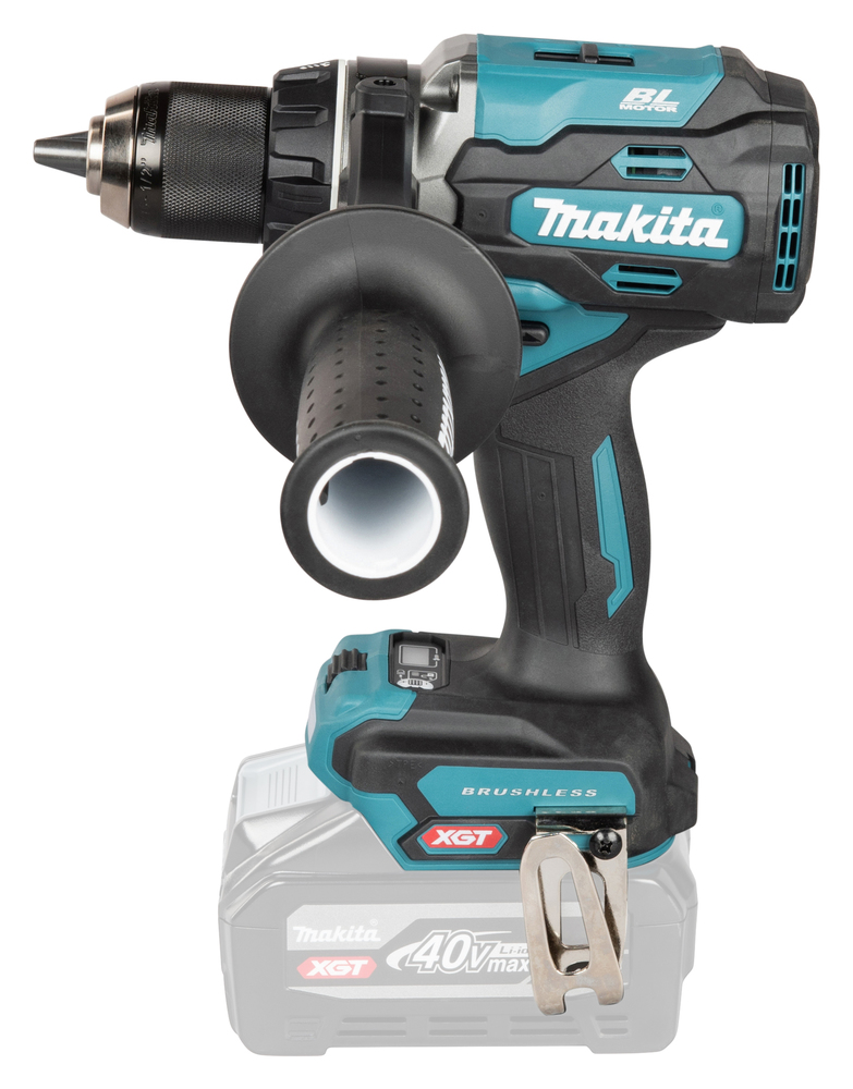 Produkteigenschaften: Lieferung ohne Akku und Ladegerät Ein universeller Akku-Bohrschrauber mit einem kräftigen Drehmoment von 150 Nm im harten Schraubfall. Diese Kraft reicht aus, um Bohrungen in Holz mit einem Durchmesser von bis zu 76 mm zu erstellen. Der Motor ist bürstenlos. dadurch ist der Akku-Bohrschrauber sehr kompakt und wartungsfrei. Ausgestattet mit AFT, damit das kräftige Rückdrehmoment beim Blockieren reduziert wird.Technische Daten: Akkusystem XGT: 1 Akkuspannung: 40 V Akkutyp: Li-ion Leerlaufdrehzahl: 0 - 2400 min¹ Drehmoment hart/weich: 150 / 88 Nm Drehmomentbegrenzung: 41 / 30 / 25 Blockierdrehmoment: 180 Nm Bohrleistung in Holz: 20 mm Bohrleistung in Holz (Schneckenbohrer): 50 mm Bohrleistung in Holz (Forstnerbohrer): 92 mm Bohrleistung in Stahl: 20 mm Bohrleistung mit Lochsägen: 152 mm Bohrfutterspannweite: 1,5 - 13 mm Produktgewicht: 2,1 kg Schalldruckpegel (LpA ): 81 dB(A) K-Wert Geräusch: 3 dB(A) Gewicht inkl. Akku: 2,8 - 4,0 kg Produktabmessung (L x B x H): 196 x 86 x 284 mm Vibrationswerte, Bohren in Metall: 2,5 m/s² Vibrationsunsicherheitsfaktor (K-Wert), Bohren in Metall: 1,5 m/s² Bürstenloser Motor: 1Lieferumfang: 1x Makita Akku-Bohrschrauber DF003GZ 1x Griff 122J21-3 1x Einhängebügel 346317-0 2x Schraube M4x12 1x Bithalter Kunststoff 452947-8 1x PH/LS Doppelbit 784637-8 (ohne Akku und Ladegerät)