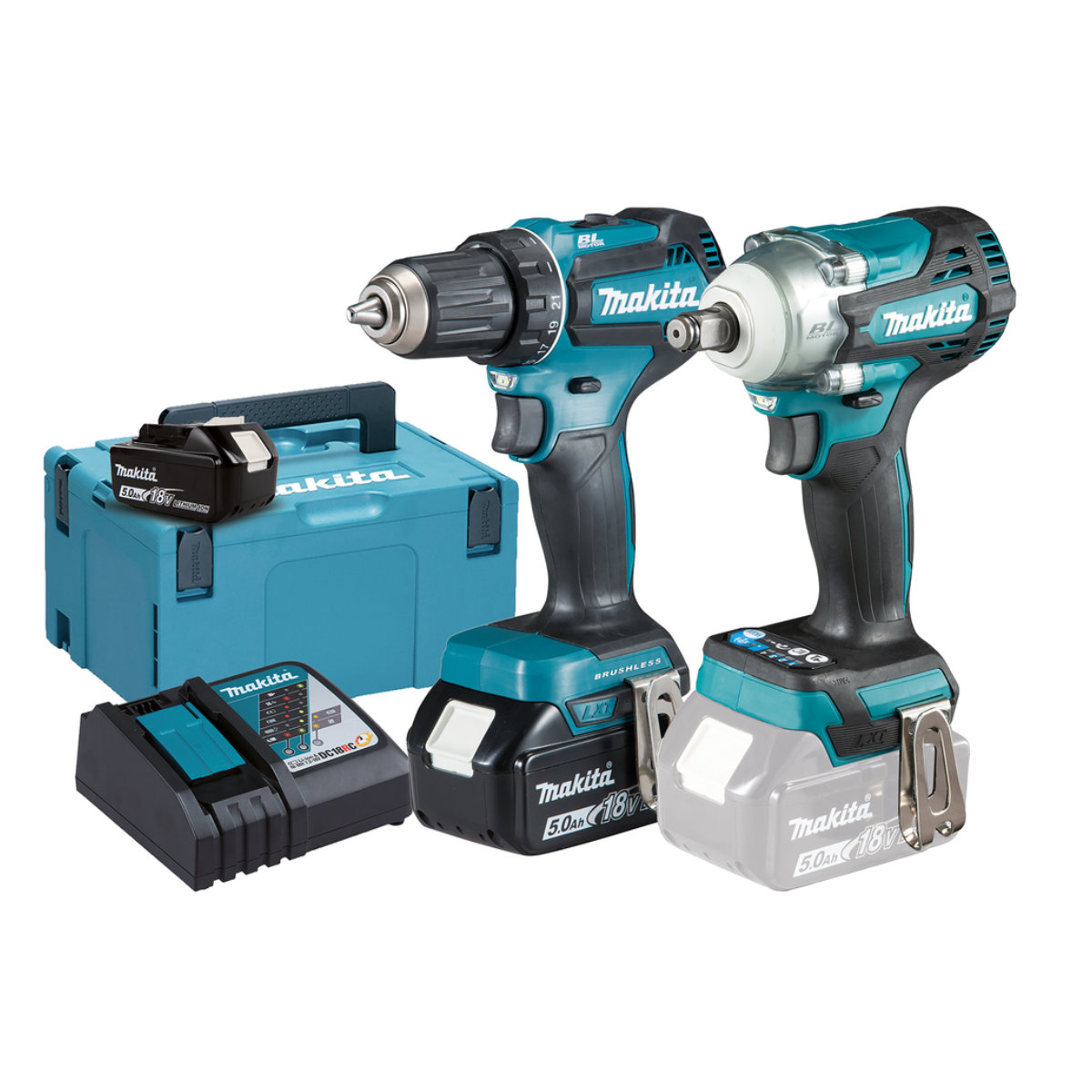 Lieferumfang:1x Makita Akku-Bohrschrauber DDF485Z1x Makita Akku-Schlagschrauber DTW300Z2x Akku BL1850B 5,0 Ah (197280-8)1x Schnellladegerät DC18RC (195584-2)1x Makita MAKPAC Gr. 4