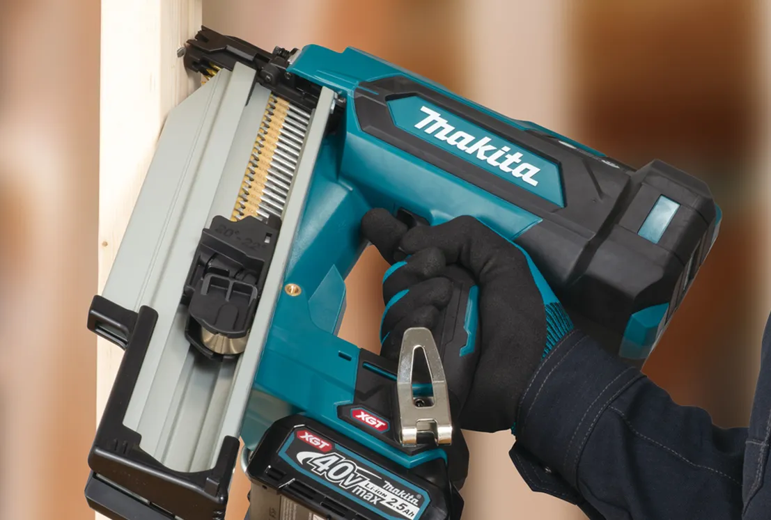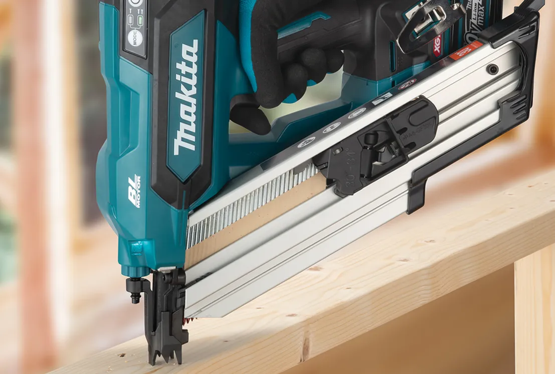 Makita Akku-Streifennagler BN001G 40V XGT Akku-Streifennagler für D-Kopf-Nägel von 50–90 mm und 30–34°. Jetzt BN001G ansehen