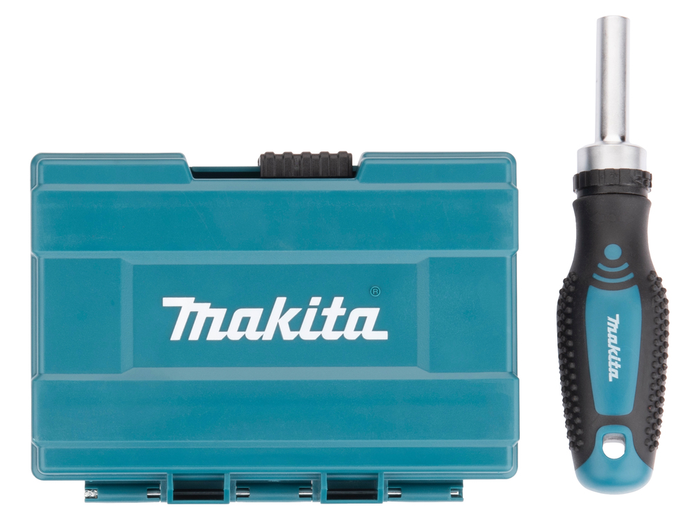 Produkteigenschaften: Bit-Set 43-teilig inklusive umschaltbaren Ratschenschraubendreher Das Bit-Set zeichnet sich durch eine farbliche Markierung der verschiedenen Bit-Typen aus. Dies erleichtert vor allem die Arbeit in lichtreduzierten Arbeitsumgebungen. Das Set beinhaltet Bis in den Längen 25 und 75 mm, sowie einen umschaltbaren Ratschenschraubendreher. Setinhalt: Bits 25 mm je: 1xPH1, 2xPH2, 1xPH3, 1xPZ1, 2xPZ2, 1xPZ3 1xSL3, 1xSL4, 1xSL4.5, 1xSL5.5 1xT10, 2xT15, 2xT20, 1xT25, 1xT27, 1xT30, 1xT40 1xTH10, 1xTH15, 1xTH20, 1xTH25, 1xTH27, 1xTH30, 1xTH40 1xH3, 1xH4, 1xH5, 1xH6 Bits 75 mm je: 1xPH2, 1xPZ2, 1xSL4.5, 1xT15, 1xT20, 1xT25 Steckschlüsseleinsätze: 1x6, 1x8, 1x10 mm 1x Schnellwechsel-Bithalter 60 mm magnetisch 1x Schraubführungshülse 80 mm 1x RatschenschraubendreherTechnische Daten: VPE: 44Lieferumfang: 1x Makita Bit-Set mit Ratschengriff 44-tlg., E-25096