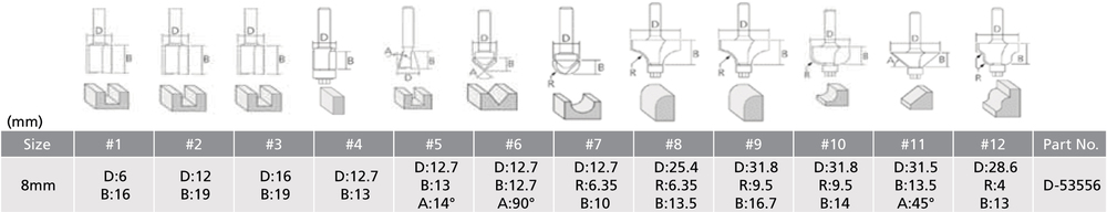 Makita Fräser-Set 8mm 12 Stück in Holz-Kassette