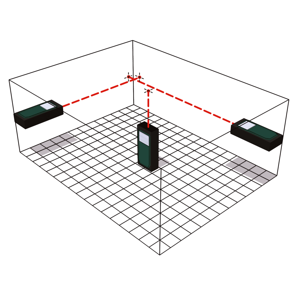Technische Daten: Laserklasse 2 Wellenlänge 635 nm Lichtleistung < 1 mW Messbereich 0.2 - 30 m Messgenauigkeit ± 3 mm Anzahl Messungen pro Batterieladung 5000 Schutzart IP IP 54 Gewicht (mit Batterien) 0.1 kg Laserfunktionen Länge / Fläche / Volumen / Dauermessung (Tracking)