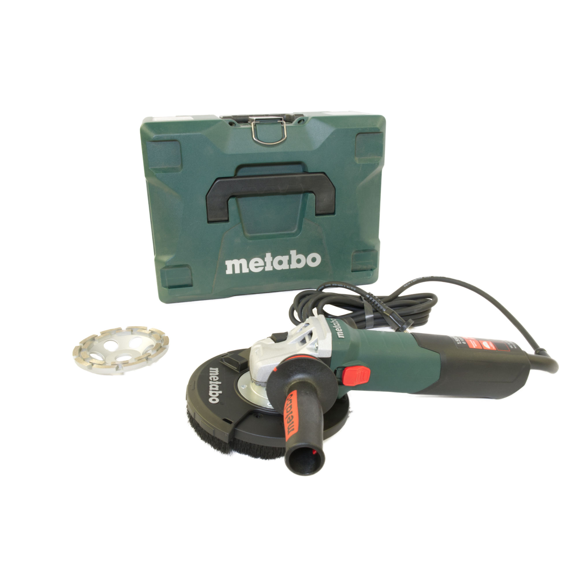 Produkteigenschaften:Universell einsetzbares System für staubarmes Schleifen im Innen- und Außenbereich.Höchste Lebensdauer in Extremanwendungen: robuster, durchzugsstarker Winkelschleifer mit größter Leistungsdichte seiner Klasse für hohen Arbeitsfortschritt.Neuer, zum Patent angemeldeter Metabo Marathon-Motor mit bis zu 50% mehr Drehmoment und bis zu 20% höherer Überlastfähigkeit für schnelleren Materialabtrag und eine längere Lebensdauer.Tacho-Constamatic (TC)-Vollwellenelektronik: hoher Arbeitsfortschritt durch konstante Drehzahl unter Last.Zusatzhandgriff Metabo VibraTech (MVT) zur Vibrationsdämpfung für komfortables Arbeiten im Dauerbetrieb.Metabo S-automatic mechanische Sicherheitskupplung: minimiert Kick-Back beim Blockieren der Scheibe auf das am Markt niedrigste Niveau – für maximalen Anwenderschutz und zügiges Weiterarbeiten.Elektronischer Überlastschutz, Sanftanlauf und Wiederanlaufschutz.Abschaltkohlebürsten zum Schutz des Motors.Aluminiumflansch für lange Lebensdauer bei schweren Einsatzwerkzeugen, z.B. Diamantscheiben.Werkzeuglos montierbare Absaugschutzhaube GED 125 aus Antistatik-Kunststoff.Unverlierbares, werkzeuglos öffenbares Segment für wandnahes Arbeiten.Anschluss für die Staubabsaugung Ø 35/41 mm. Technische Daten:Schleifscheiben-Ø: 125 mmNennaufnahmeleistung: 1550 WAbgabeleistung: 940 WLeerlaufdrehzahl: 9600 /min-1Drehzahl bei Nennlast: 9600 /min-1Drehmoment: 4.2 NmSpindelgewinde: M 14Gewicht ohne Netzkabel: 2.7 kgKabellänge: 4 mSchalldruckpegel : 93 dB(A)Schallleistungspegel (LwA): 104 dB(A)Messunsicherheit K: 3 dB(A)Oberfläche schleifen: 5.5 m/s²Messunsicherheit K: 1.5 m/s²Schleifen mit Schleifblatt: 2.6 m/s²Messunsicherheit K : 1.5 m/s²Länge (Verpackung): 40.000 cmBreite (Verpackung): 30.000 cmHöhe (Verpackung): 16.000 cmBruttogewicht : 5.754 kg Lieferumfang:1x Metabo Winkelschleifer WE 15-125 HD1x Absaughaube GED 1251x Stützflansch1x Zweilochmutter1x Zusatzhandgriff Metabo VibraTech (MVT)1x Zweilochschlüssel1x metaLoc Koffer1x Diamanttopfscheibe Beton Classic