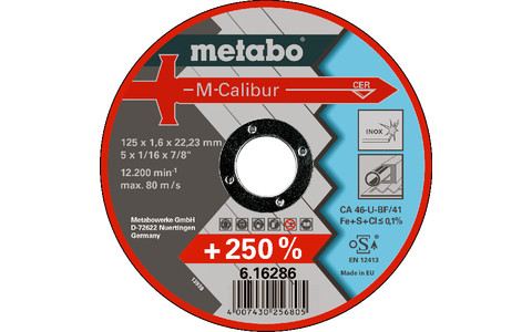 Deutschland 07022/720 Metabo M-Calibur 125 x 1,6 x 22,23 Inox, TF 41 (616286000) Artikel-Nr.: 616286000 EAN: 4007430256805 Hersteller: METABO