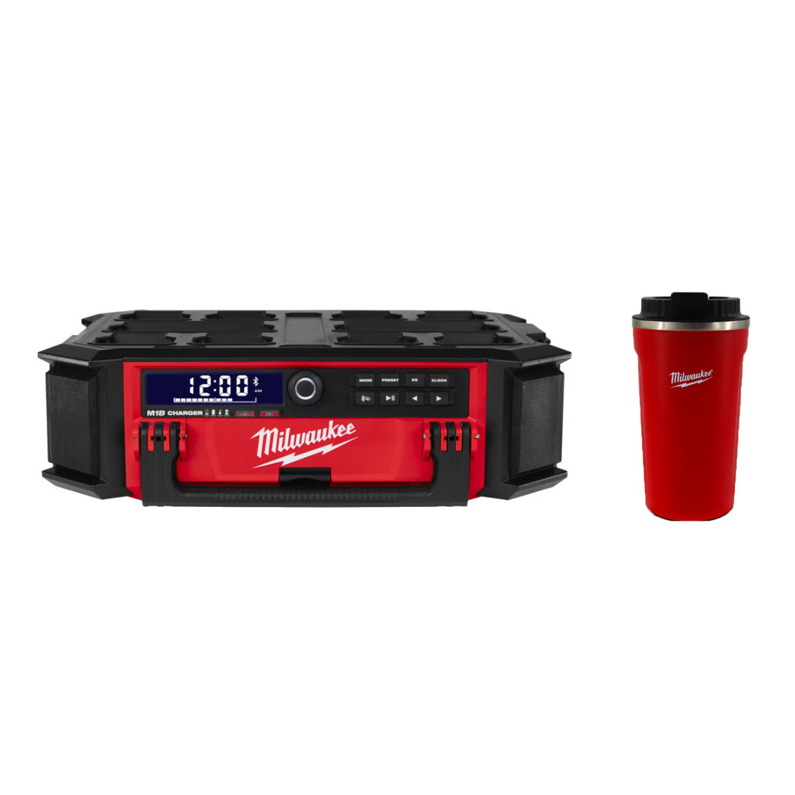 Produkteigenschaften: Premium 360° Surround Sound Lautsprecher mit einem 40 W Verstärker, der satten und vollen Klang für große und Außenräume liefert DAB + - und AM / FM-Tuner mit digitalem Prozessor bieten höchste Empfangsgenauigkeit, Signalklarheit und zusätzliche Informationen wie Song, Interpreten und die genaue Zeit Digitaler Bluetooth®-Empfänger: bietet eine Empfangsreichweite von 30 m Kompatibel mit dem gesamten MILWAUKEE® PACKOUT™ System Eingebaute Ladefunktion für schnelles und einfaches Aufladen jedes M18™ Akkus oder mobiler Endgeräte mittels USB-Anschluss Resistent gegen Staub und Spritzwasser dank IP-57-Schutzklasse im batteriebetriebenen Modus Betrieb mit MILWAUKEE® M18™ Akkus oder Netzbetrieb Ganztägige Laufzeit mit einer M18™ 5.0 Ah AkkuladungTechnische Daten: Empfangsbereich AM (kHz): 522 - 1620 Empfangsbereich FM (MHz): 87.5 - 108 Empfangsbereich DAB+ (MHz): 174 - 240 Abmessungen (mm) 558.8 x 411.5 x 172 Gewicht mit Akku (kg): 10,9Lieferumfang: 1x Milwaukee PackOut Netz-/Akku-Radio mit Ladefunktion M18PRCDAB+-0, Keine Akkus im Lieferumfang enthalten, Kein Ladegerät im Lieferumfang enthalten, im Karton 1x Milwaukee Vacuum Coffee Mug / Thermo Kaffee Becher
