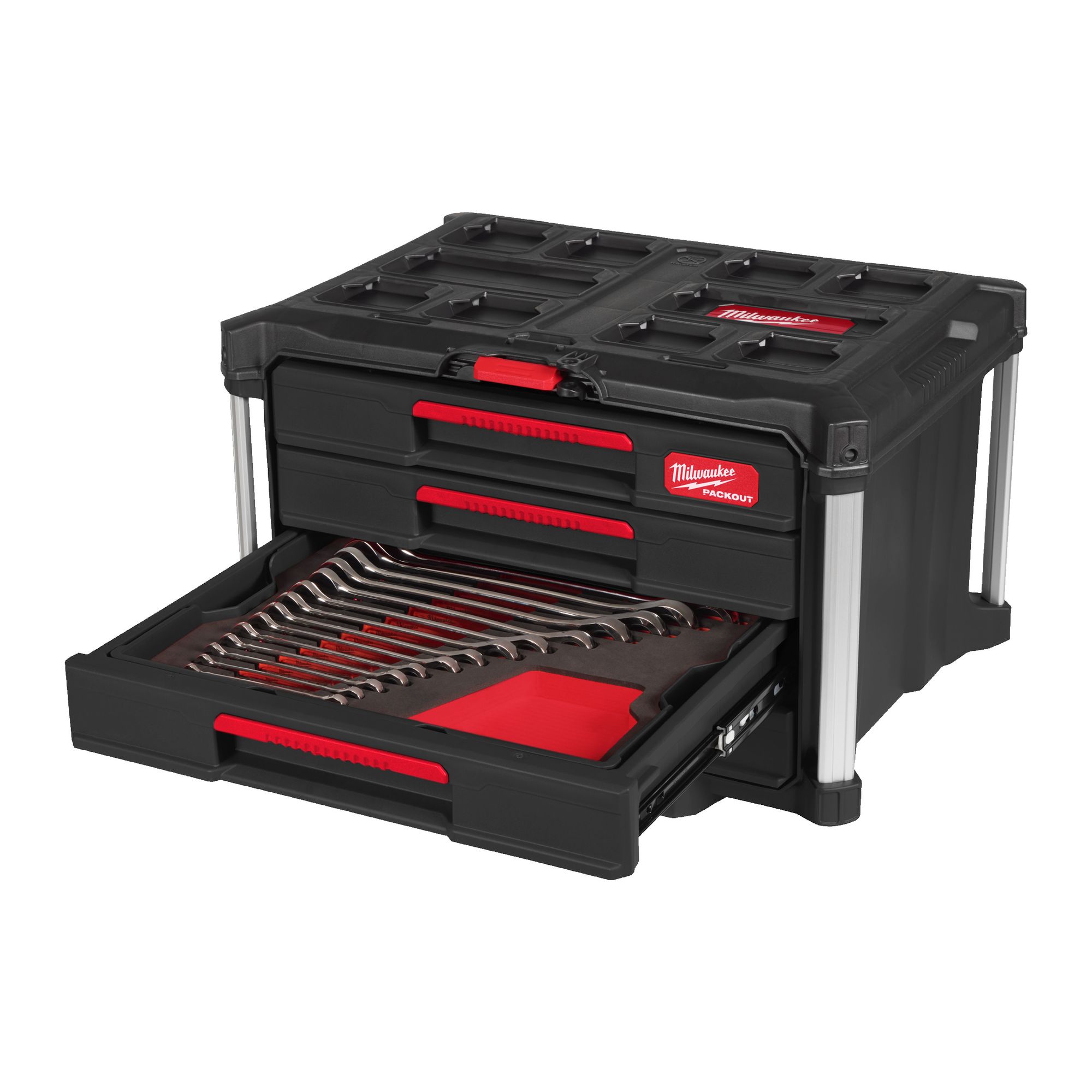 Milwaukee MAX BITE Ringmaulschlüssel Set 62-tlg. im PACKOUT Koffer mit Schubladen