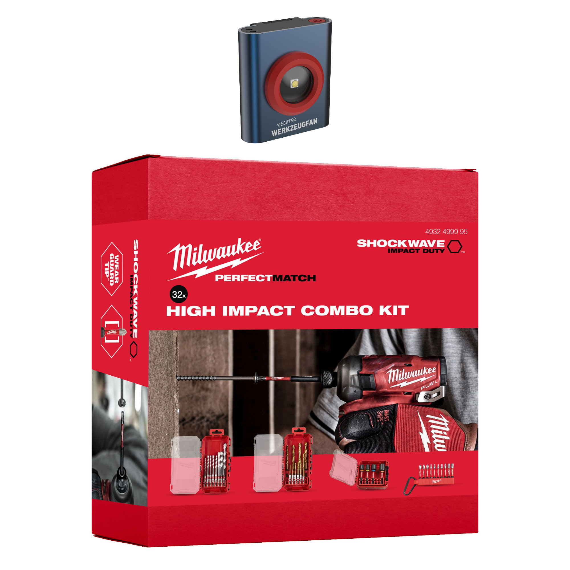 Milwaukee SHOCKWAVE Zubehör-Set 32-tlg. + Echter Werkzeugfan Mini Akku-Alustrahler LightPod 500R