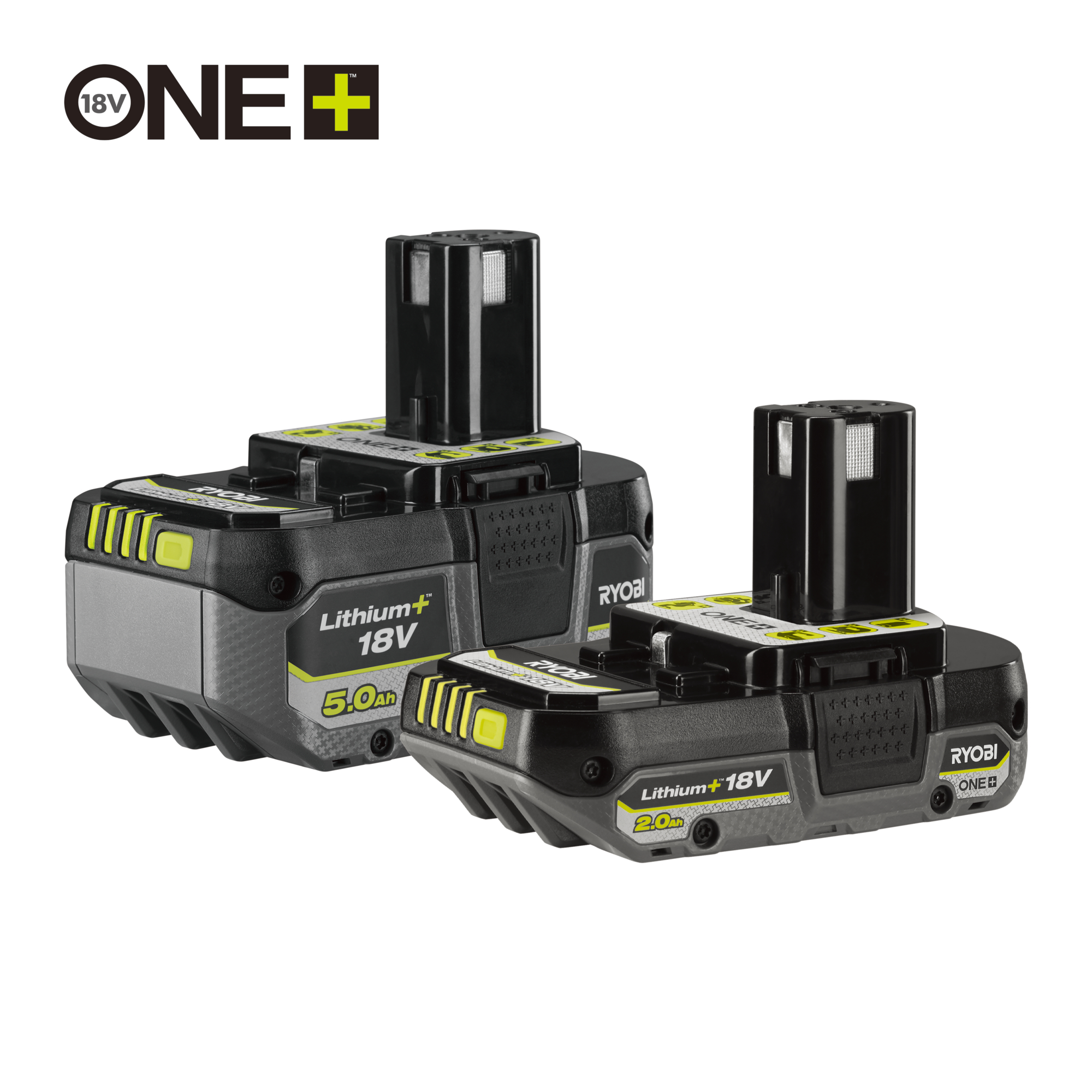 Lieferumfang: 1x Ryobi 18 V ONE+ Lithium+ Akkupack 2,0 Ah 1x Ryobi 18 V ONE+ Lithium+ Akkupack 5,0 Ah (ohne Ladegerät)