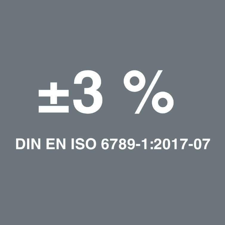 Technische Daten:Genauigkeit beträgt ±3 % gemäß DIN EN ISO 6789-1:2017-07