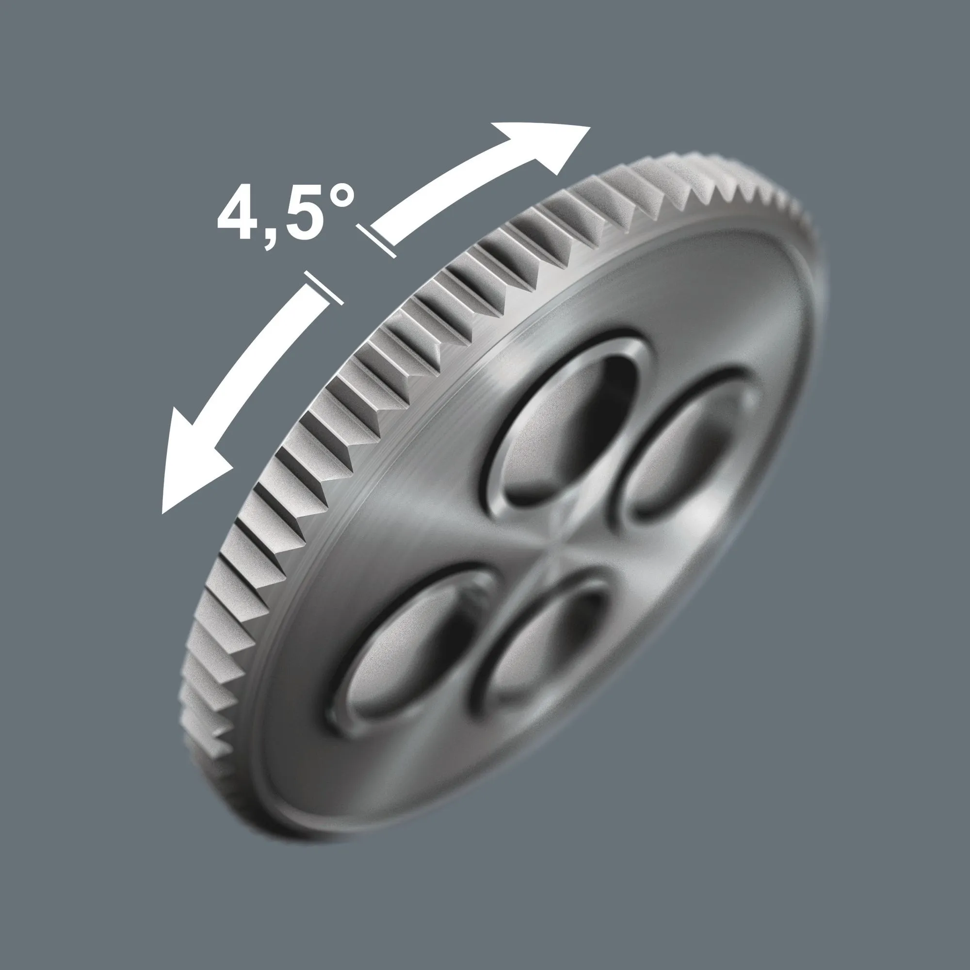 80 Zähne sorgen für nur 4,5° Rückholwinkel.