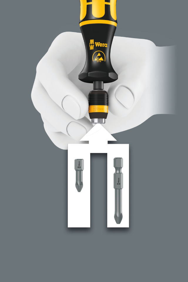Deutschland 0202/40450 Wera 813 R Bits-Handhalter ESD, unmagnetisch 1/4x90 Artikel-Nr.: 05051273001 EAN: 4013288103901 Hersteller: WERA