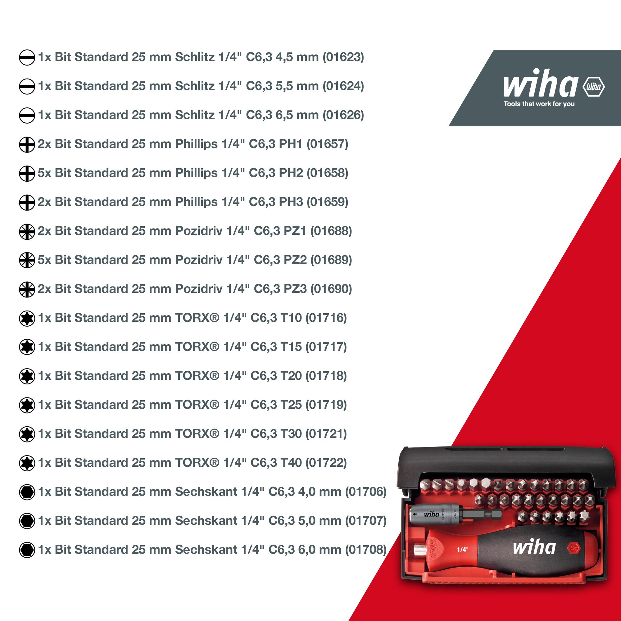 Wiha Bit Set Collector Standard 25 mm gemischt 32-tlg. 1/4" C6,3 inkl. Box (34686)