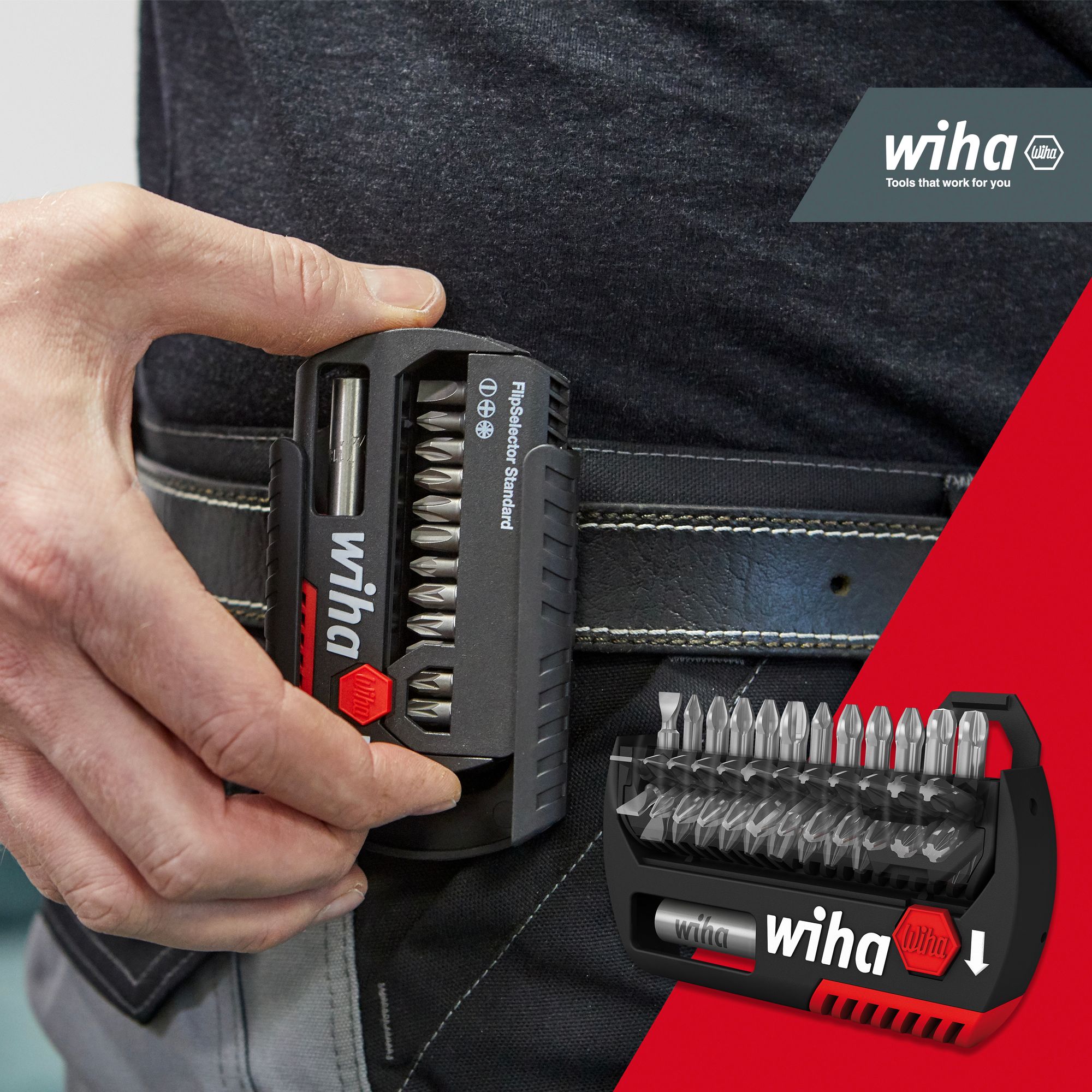 Wiha Bit Set FlipSelector Standard 25 mm PH, PZ, TORX® 13-tlg. 1/4" C6,3 mit Gürtelclip (39060)