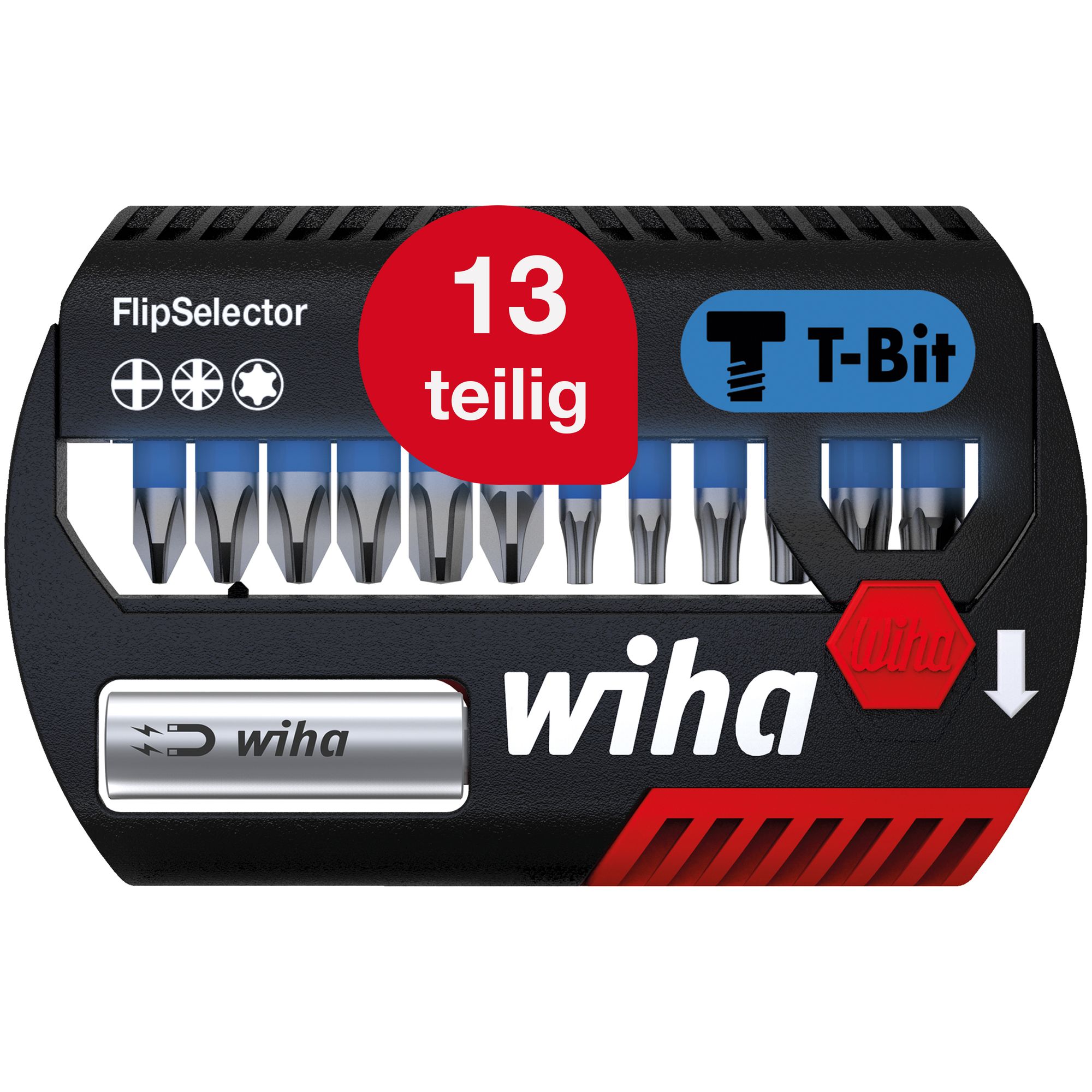 Wiha Bit Set FlipSelector T-Bit 25 mm Phillips, Pozidriv, TORX® 13-tlg. 1/4" C6,3 (41824)