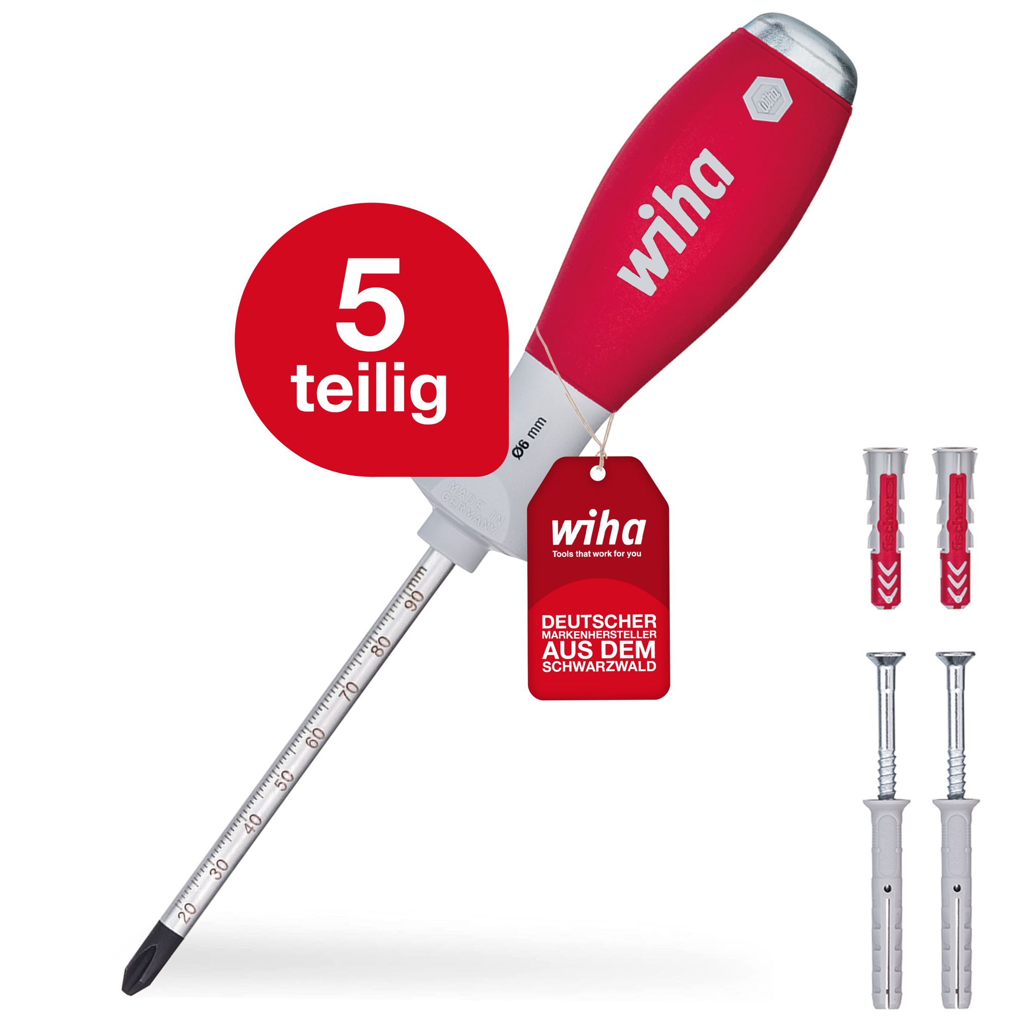 Wiha Dübellochschläger Set SoftFinish® mit 6 mm Rundklinge und 4 Dübeln (41289)