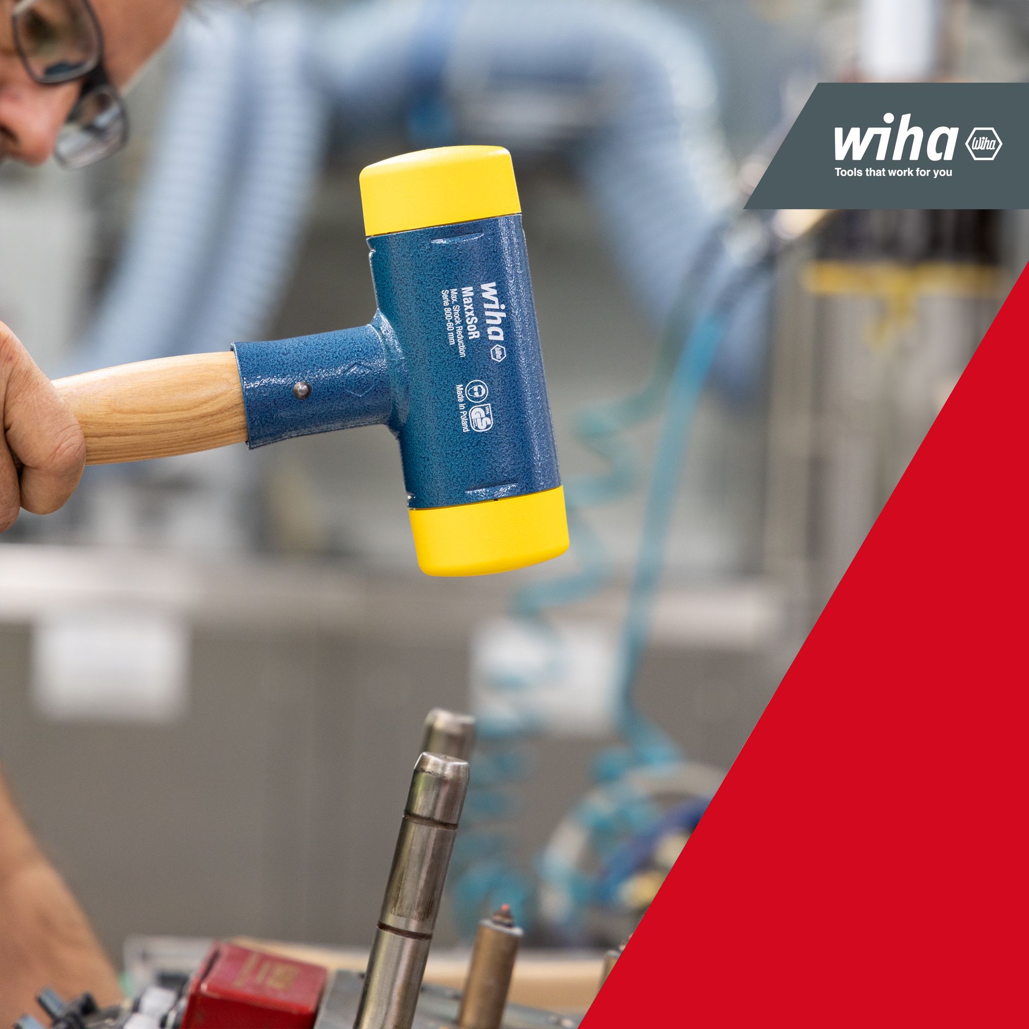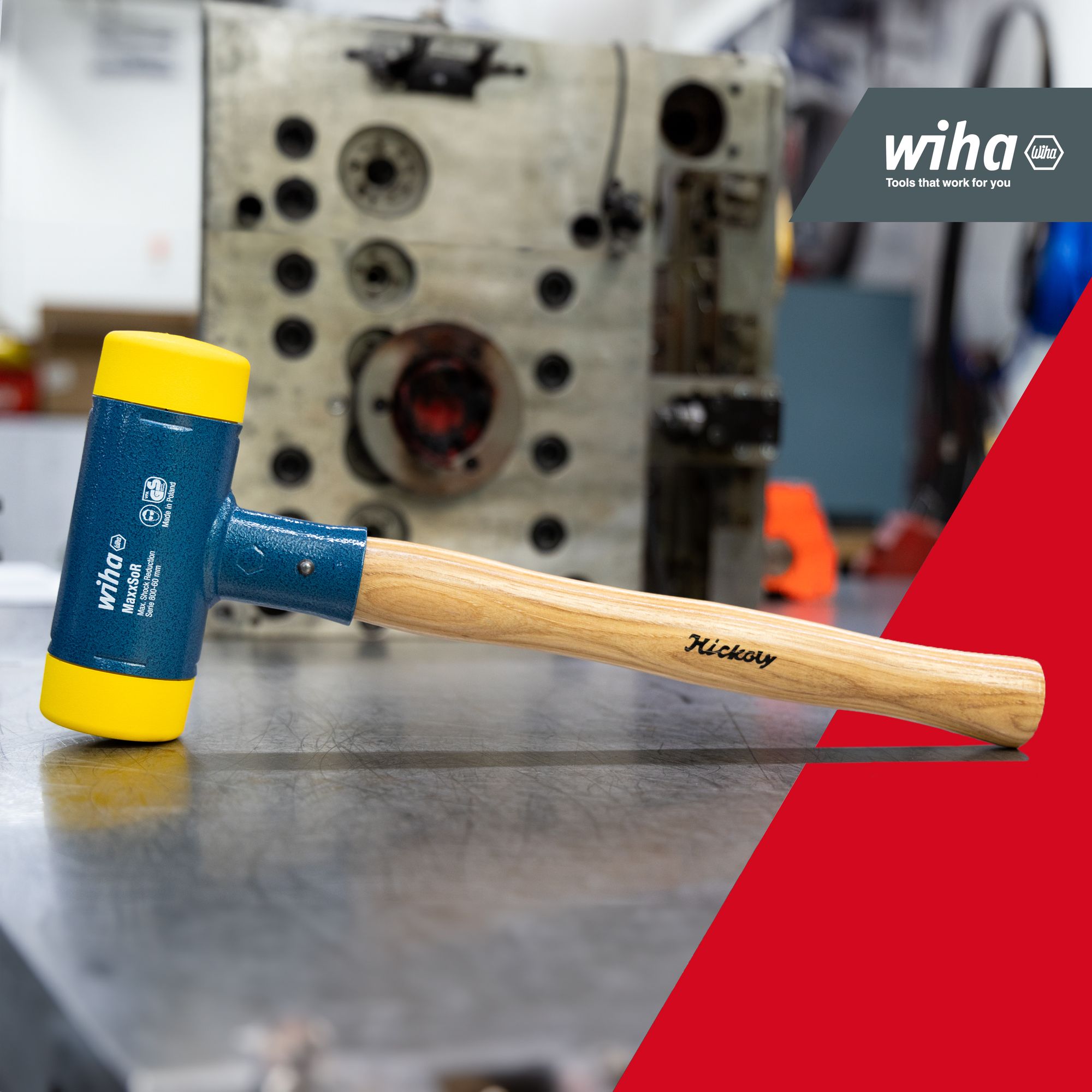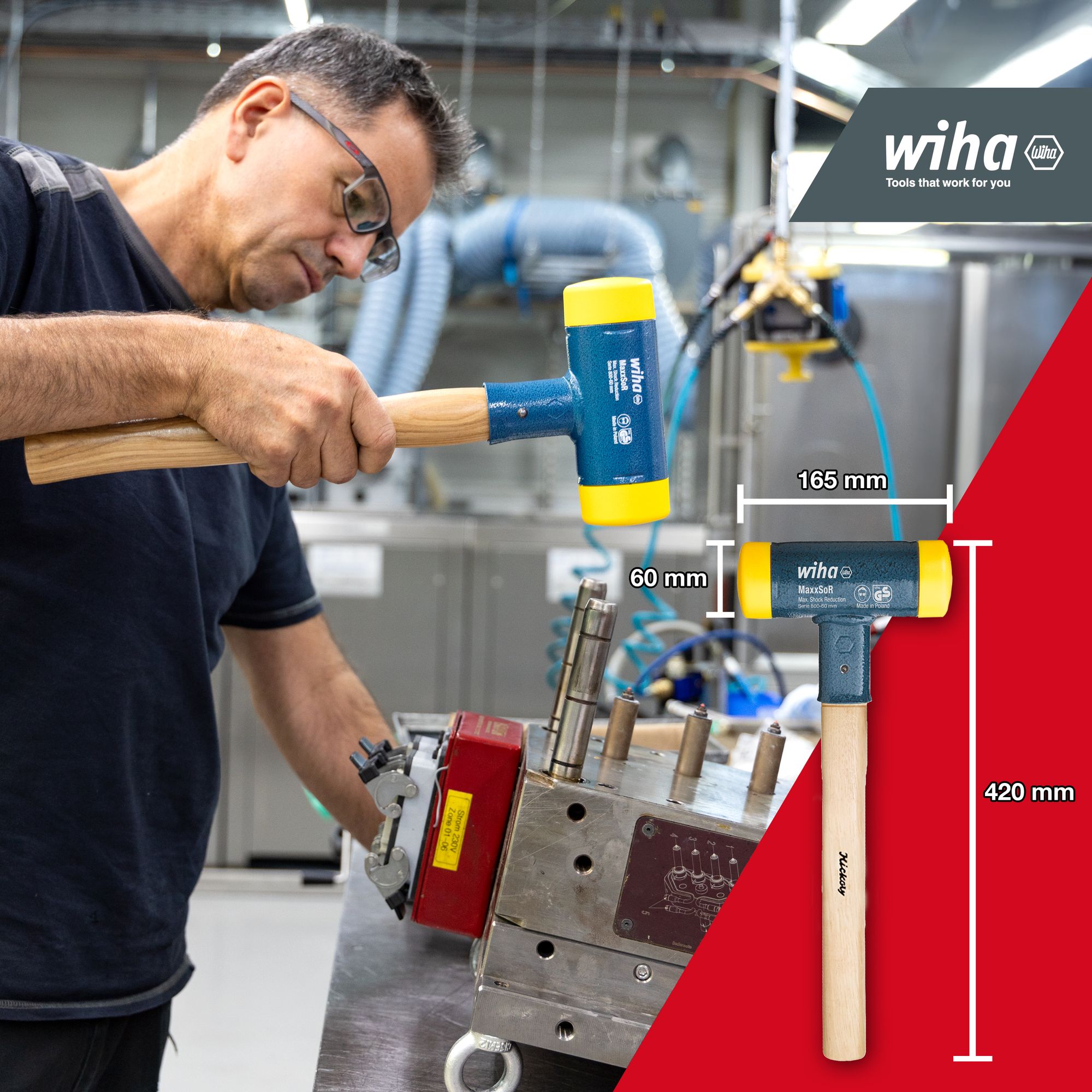 Produkteigenschaften:Mit seinem mittelharten, gelben Kopf ist der Wiha Schonhammer ideal für eine Vielzahl von Arbeiten - vom Werkzeug- und Maschinenbauer Kfz-Reparaturen bis hin zu Blech- und MontagearbeitenDas einzigartige Design dieses Hammers ermöglicht dosierte Positionsschläge, was eine präzise Handhabung Ihrer Werkstücke gewährleistet.Der ergonomische Hickory-Holzstiel liegt gut in der Hand und ermöglicht ein komfortables Arbeiten für längere Zeiträume hinwegDarüber hinaus minimiert das rückschlagfreie Hämmern die Belastung von Gelenken, Sehnen und Muskeln, wodurch Ihre Gesundheit geschützt wird.Ein weiterer Vorteil des Schonhammers ist die Kosteneffizienz. Sowohl der Stiel als auch die Schlagköpfe sind als Ersatzteile erhältlich, wodurch die Lebensdauer des Hammers verlängert und Ihre Kosten gesenkt werden.Zusammengefasst ist der Wiha Schonhammer ein vielseitiges, zuverlässiges und langlebiges Werkzeug, das in keiner Werkstatt fehlen sollte. Es bietet die perfekte Balance zwischen Leistung und Komfort und ist damit ein wertvoller Beitrag für Ihre Werkzeugsammlung.VIELSEITIGE ANWENDUNGSMÖGLICHKEITEN: Gelber Kopf / mittelhart: Der Gummihammer ist z.B. für Werkzeug- und Maschinenbau, Kfz-Reparatur, Blech- und Montagearbeiten geeignetEFFIZIENT: Der Schonhammer mit Rund-Schlagkopf ermöglicht eine optimale Schlagwirkung bei vermindertem Kraftaufwand, wodurch die Arbeit erheblich erleichtert wirdGESUNDHEIT: Der Hammer minimiert die Belastung auf Gelenke, Sehnen und Muskulatur, wodurch Ihre Gesundheit geschont wirdKOSTEN: Der ergonomische Hickory-Holzstiel und die Schlagköpfe sind jeweils als Ersatzteile erhältlichQUALITÄT: Mit seiner Gesamtlänge von 420 mm und einem Schlagkopf-Durchmesser von 60 mm, ist dieser Schonhammer ein handliches und zuverlässiges Werkzeug für jede WerkstattDer Wiha Schonhammer mit Hickory-Holzstiel und einem Rund-Schlagkopf-Durchmesser von 60 mm ist ein unverzichtbares Werkzeug für jeden Profi und Heimwerker. Dieser rückschlagfreie Kunststoffhammer mit einer Gesamtlänge von 420 mm bietet maximale Effizienz und Sicherheit bei jeder Anwendung.Technische Daten:Werkzeug für Elektrik: NeinSB - Verpackung: NeinESD Artikel: NeinDurchmesser Schlagkopf (mm): 60Gesamtlänge (mm): 420 mmHöhe Hammerkopf (mm): 165 mmmit Batterie / Akku: NeinLieferumfang:1x Schonhammer rückschlagfrei mit Hickory-Holzstiel, Rund-Schlagkopf 60, 420 mm (02098)