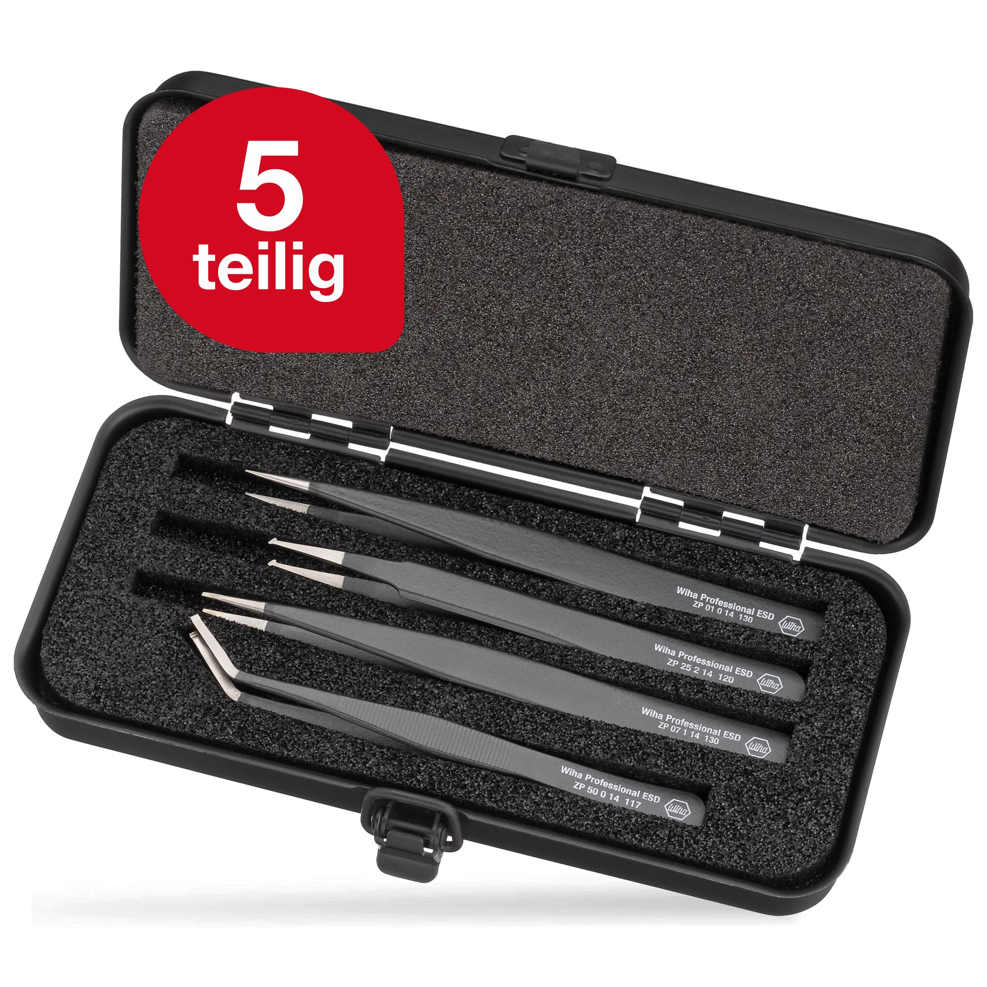 Wiha SMD-Pinzette Set Professional ESD gemischt 5-tlg. inkl. Box (32349)