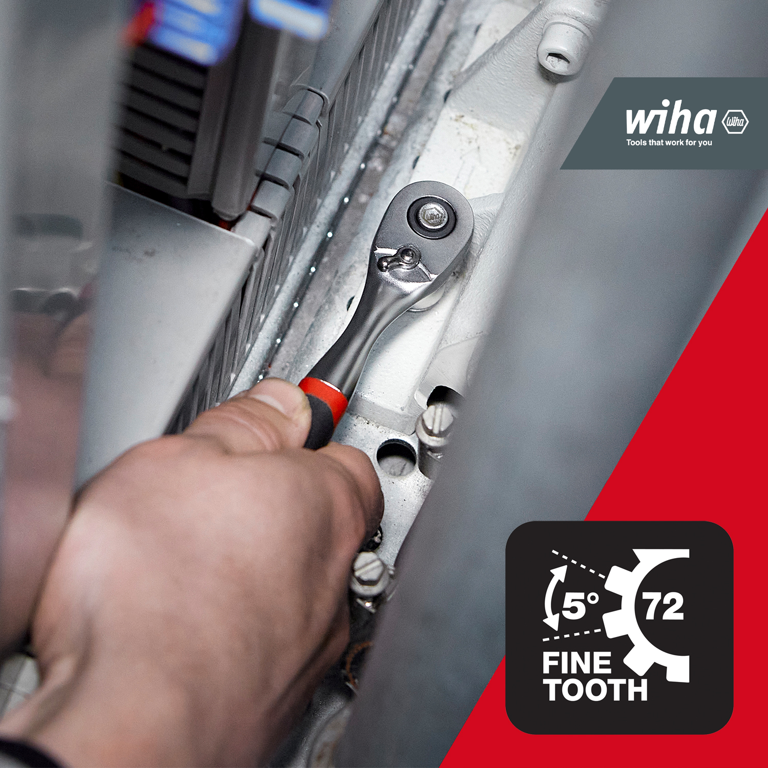 Produkteigenschaften:ERGONOMIE: Die kleine Umschaltknarre besitzt einen rutschfesten und ergonomischen Zweikomponentengriff, der ihre Gesundheit schontSICHERHEIT: Die gekröpfte Bauform der Umschaltratsche sorgt für eine erhöhte Halteposition, wodurch kraftvolles Zugreifen möglich wird und die Finger vor Verletzungen geschützt werdenFLEXIBILTÄT: Der kompakte Knarrenkopf der Ratsche mit 72 Zähnen ermöglicht durch seine Form und den Rückholwinkel von 5° selbst in beengten Arbeitsbedingungen präzises und effizientes ArbeitenEFFIZIENT: Der Druckknopf auf dem Knarrenkopf des Handwerkzeugs löst die Kugelsicherung und dient zum einfachen und schnellen Wechseln von Stecknüssen oder AdapternDURCHDACHT: Durch den Umschalthebel der Feinzahn-Ratsche kann einfach wzischen dem Rechts- oder Linkslauf gewechselt werden. Zudem hält die Ratsche Belastungen weit r den DIN-Anforderungen standDas Anziehen und nen fest angezogener Sechskantschrauben und -muttern kann eine anstrengende Aufgabe sein. Mit der Umschaltknarre von Wiha, die sowohl klein als auch feinverzahnt ist, kann der Anwender jede Verschraubung einfach nen und schließen. Diese kleine Umschaltknarre, auch als Feinzahn-Umschaltknarre bekannt, vereinfacht die Arbeit enorm.Dank des rutschfesten Zweikomponentengriffs ist die Arbeit mit dieser Umschaltknarre besonders ergonomisch und komfortabel. Der kompakte Knarrenkopf ermöglicht das Arbeiten auch in beengten Arbeitsbedingungen. Die gekröpfte Bauform sorgt für eine erhöhte Halteposition, wodurch kraftvolles Zugreifen möglich wird und die Finger vor Verletzungen geschützt werden.Die feinverzahnte Ratsche mit 72 Zähnen, oft als Umschaltratsche bezeichnet, erlaubt das Arbeiten in beengten Arbeitsumgebungen durch einen kurzen Rückholwinkel von 5°. Mit Hilfe eines Umschalthebels, kann einfach zwischen dem Rechts- oder Linkslauf gewechselt werden. Die robuste Umschaltknarre ermöglicht sicheres Arbeiten und hält Belastungen weit r den DIN-Anforderungen bis zu einem Drehmoment von 768 / 303 / 93 Nm stand. Der Druckknopf auf dem Knarrenkopf löst die Kugelsicherung und dient zum einfachen und schnellen Wechseln von Stecknüssen oder Adaptern. Hergestellt aus hochwertigem Chrom-Vanadium-Stahl steht die Umschaltknarre für Langlebigkeit und Robustheit.Technische Daten:VDE zertifiziert: NeinWerkzeug für Elektrik: NeinOberfläche: matt chromatisiertSB - Verpackung: JaESD Artikel: NeinFarbe: rot / schwarzInnenvierkant 1 (Zoll): 1/4"Breite (mm): 24.5 mmHöhe (mm): 24 mmGesamtlänge (mm): 135 mmLieferumfang:1x Wiha Umschaltknarre 1/4" mit Druckknopf und Kugelsicherung 135 mm (45626)