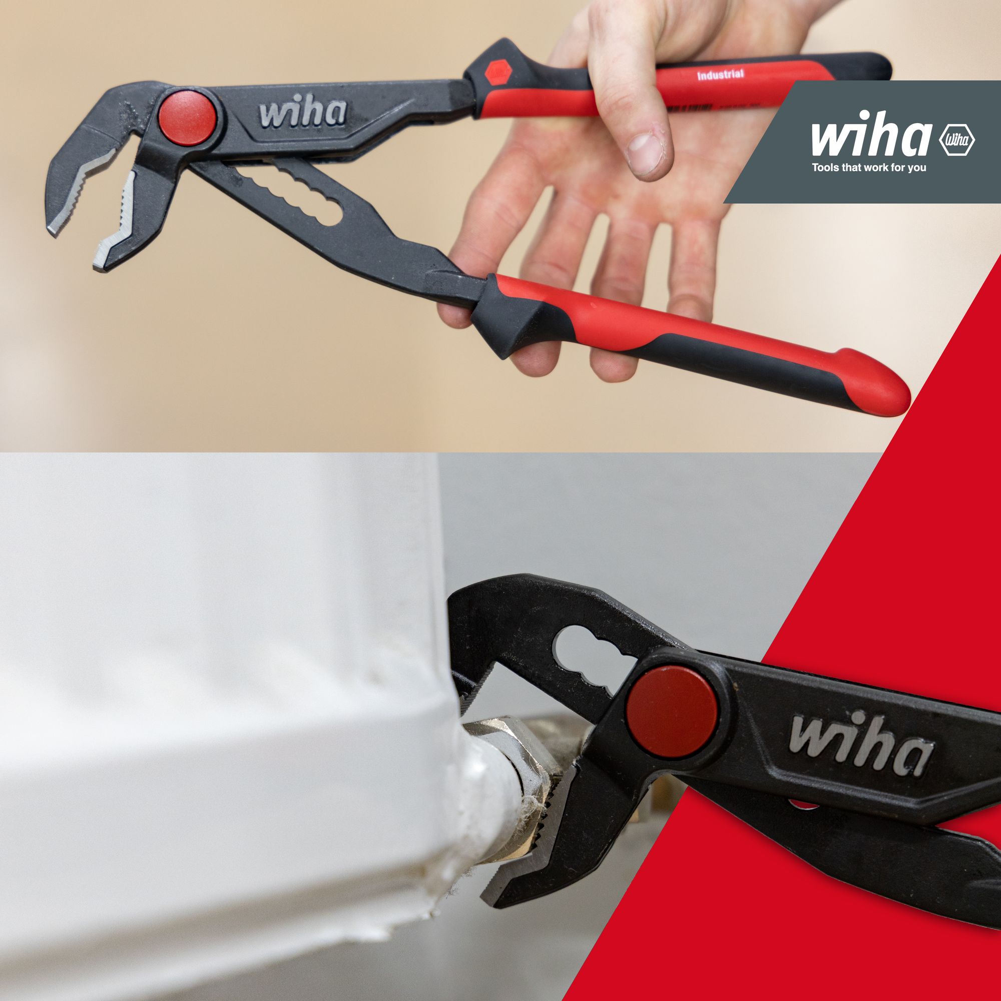 Wiha Wasserpumpenzange Industrial mit Druckknopf 250 mm (34518)