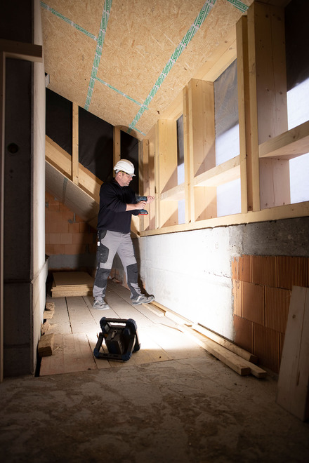 Produkteigenschaften: Der extrem robuste und leistungsstarke LED Akku Arbeitsstrahler BS 5000 MA sorgt für eine effiziente Lichtleistung bei maximaler Kompatibilität mit Akkus aus dem Bosch Professional 18V System Dank abnehmbarer Schutzhaube ist der Baustrahler kompatibel mit 18V Li-Ion GBA- und ProCORE 18V-Akkus aus dem Bosch Professional Sortiment Die Arbeitsleuchte ist somit schnell einsatzfähig und sorgt für perfektes Arbeitslicht im Handwerk. Der vielseitig einsetzbare Baustellenstrahler überzeugt außerdem durch folgende Eigenschaften: Kompatibel mit ProCORE18V und GBA 18V Li-Ionen Akkus aus dem Bosch Professional Sortiment (Akkus nicht im Lieferumfang enthalten) Effiziente Lichtleistung durch Akku Technologie Schaltstufen für Arbeitsbeleuchtung mit 100% und 50%, dimmbar 10% bis 100% Leuchtdauer ca. 2,5h (100%), 5h (50%), bei Verwendung eines Akkus 18V 5Ah Mit integrierter USB Powerbank Robustes Gehäuse, rutschfest durch gummierten EckschutzTechnische Daten: Klappbügel zum Aufstellen oder Befestigen auf Stativ Lichtstrom: 6000lm Farbtemperatur: 5000 K Schutzart: IP55 Schutzklasse: IK08 Betriebsmittel der Kategorie 2 (K2): Einsatz für den rauen Betrieb mit hohen mechanischen, physikalischen und chemischen Einwirkungen Spannung 18 V Kapazität 4 AhLieferumfang: 1x Brennenstuhl LED Akku Arbeitsstrahler BS 5000 MA Bosch System, 6000lm, IP55 1x Fein Akku-Pack GBA 18 V 4.0 Ah AS (AMPShare) (ohne Ladegerät)