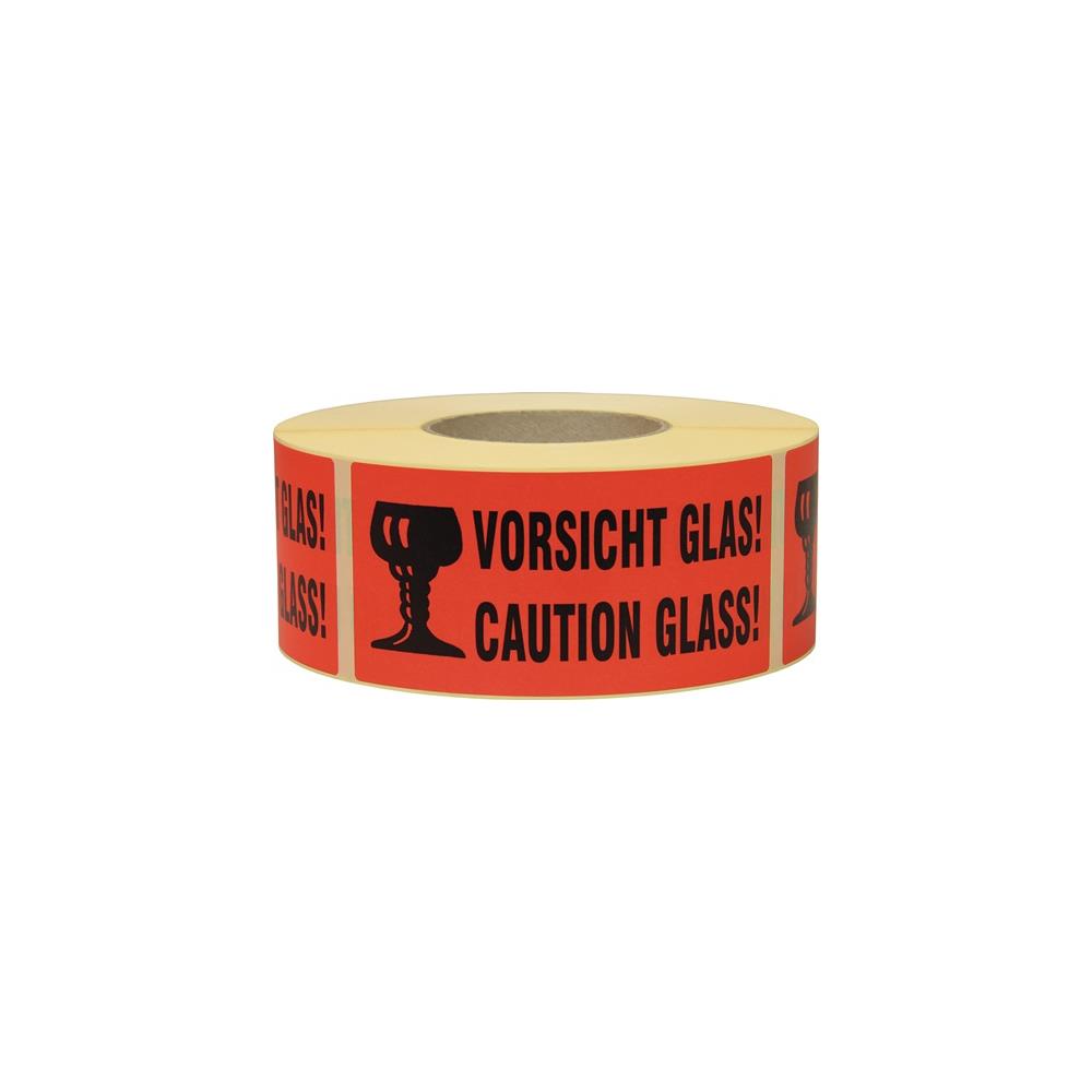 Transpak Hinweisetikett Vorsicht Glas Länge 145 mm, Breite 70 mm rot