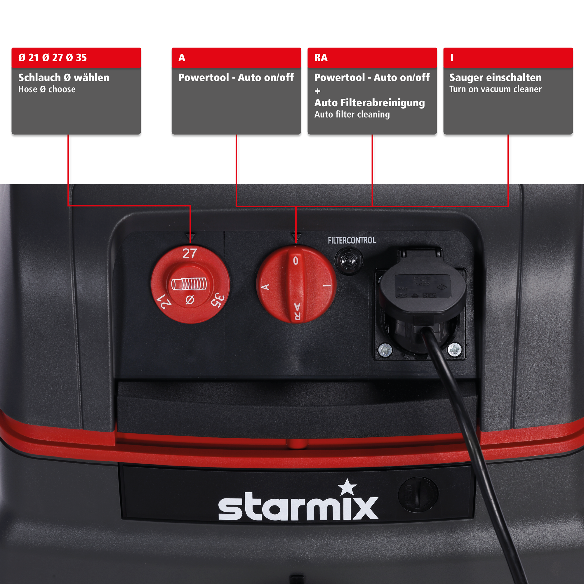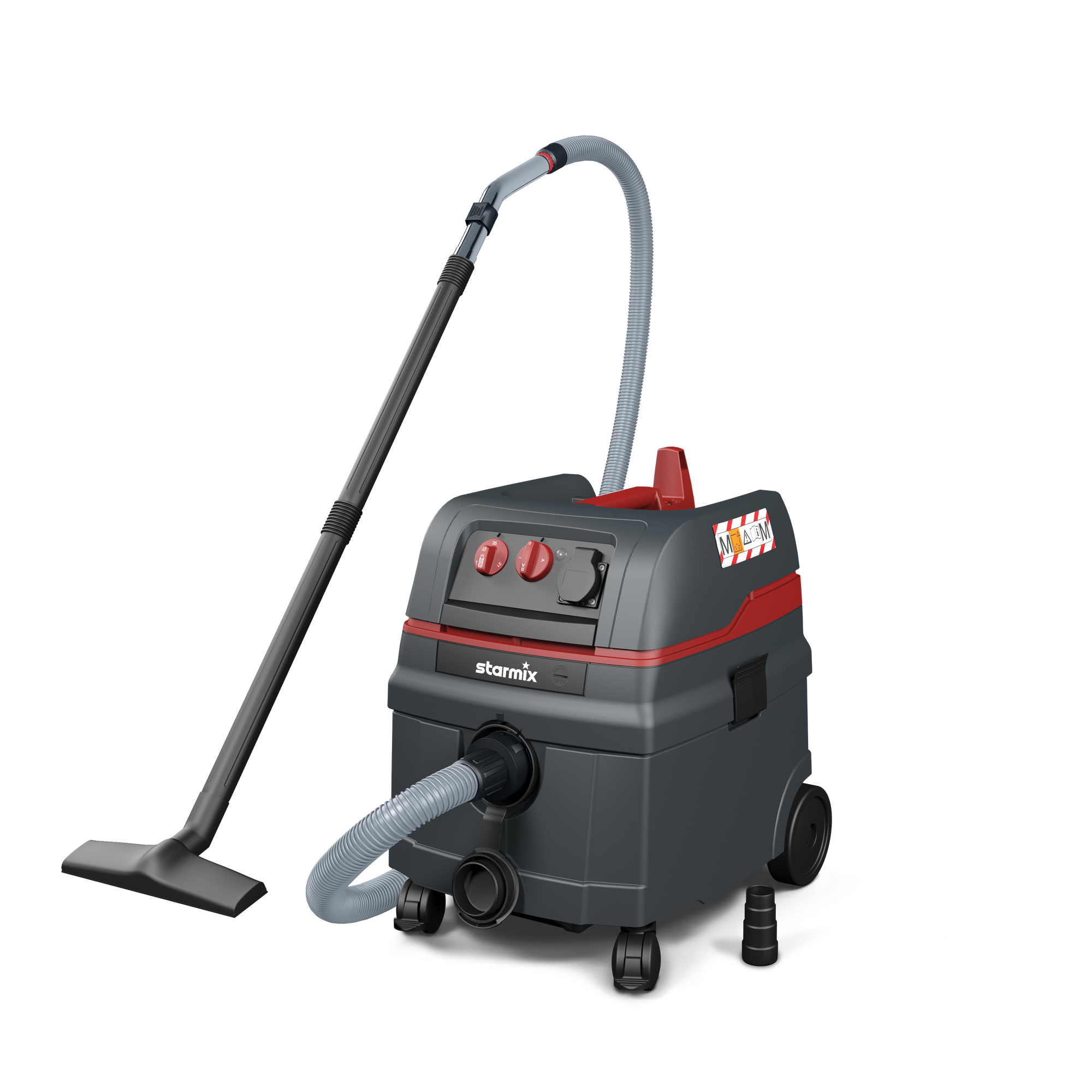 Produktbeschreibung:Gerätesteckdose + Automatische Filterabreinigung: Dank der integrierten Gerätesteckdose können Sie Ihr Elektrowerkzeug direkt am Industriesauger einstecken und den Betrieb des Saugers auch per Ein- und Ausschalten des Powertools steuern. Die Filterreinigung sorgt mittels elektromagnetischer Impulse dafür, dass die Filter während der Arbeitspausen automatisch abgereinigt werden. Für maximale Effizienz und um Arbeitsunterbrechungen auf ein Minimum zu reduzieren, empfehlen wir beide Funktionen gleichzeitig zu nutzen - stellen Sie hierzu den Funktionsschalter auf „RA.“Für gesundheitsgefährliche L - M Stäube uneingeschränkt zulässig: Bei der Arbeit mit Feinstaub ist dank des Staubrückhaltevermögens von über 99,9% und der im Lieferumfang enthaltenen Staubklasse M Filterkassetten ein hohes Maß an Sicherheit geboten. Der starmix Industriesauger ist durch das Institut für Arbeitsschutz der Deutschen Gesetzlichen Unfallversicherung (IFA) geprüft und zertifiziert. Somit kann der Nass- Trockensauger bedenkenlos für die Arbeit mit gesundheitsgefährlichen Stäuben der Staubklassen L und M verwendet werden.Durchdachte Konstruktion - Made in Germany: Der in Deutschland hergestellte Nass- Trockensauger verfügt über einen robusten, doppelwandigen Behälter, welcher äußeren Krafteinwirkungen problemlos standhält, mit einem 25 Liter Behältervolumen und großen Laufrädern für gute Manövrierbarkeit. Außerdem sorgt der Bajonettanschluss für eine ziehfeste Verbindung zwischen Schlauch und Behälter, während der Wechsel der Filterkassetten einfach und staubfrei ist. Der Industriesauger besteht aus schlagfestem Kunststoff, der antistatisch vorbereitet ist. Optimal für die Baustelle, Werkstatt und Renovierungen / Sanierungen.Sehr gute Saugleistung dank Hochleistungsturbine: Die im Gerät verbaute Hochleistungsturbine sorgt dafür, dass selbst das Aufsaugen von schwereren Partikeln kein Problem ist. Der starmix ISC Industriesauger hat eine Leistung von 1600 Watt, einen maximalen Volumenstrom von 75 Liter / Sekunde sowie einen maximalen Unterdruck von 280 mbar. Somit ist der Sauger nicht nur vielseitig einsetzbar, sondern zählt auch zu den leistungsfähigsten Industriesaugern in seiner Klasse!Technische Daten:Leistungsaufnahme: 1600 WattVolumenstrom: 75 l/sUnterdruck: 280 mbarBehältervolumen: 25 LiterSchalldruckpegel: 69 db(A)Netzleitungslänge: 8 MeterAktionsradius: 13 MeterLieferumfang:1x Starmix Industriestaubsauger ISC M-1625 Safe1x 5 Meter Saugschlauch mit Nebenluftring 2x Saugrohre (je 50 cm)1x Edelstahl Griffrohr (mit Nebenluftschieber)1x Fugendüse (22 cm lang)1x Bodendüse (30 cm breit)1x Anschlussmuffe (abgestuft) 3x PE-Entleerbeutel2x Filterkassetten
