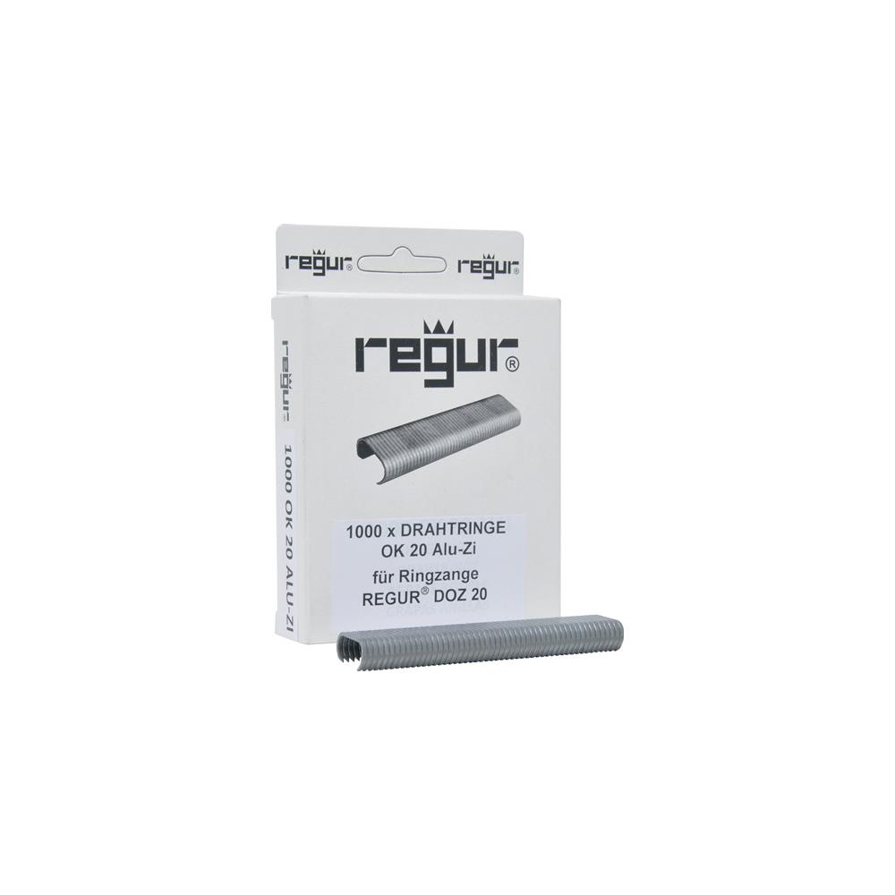 Produkteigenschaften:C-Ringerunde Form im geschlossenen Zustand mit Innendurchmesser von 6 - 10 mmArt.-Nr. 4000 811 176 Alu-Zi Technische Daten:Material: Alu-Zi Marke: REGURInhalt: Schachtel á 1000 RingeLieferumfang:1x PAKRegur Drahtring OK20® Alu-Zi