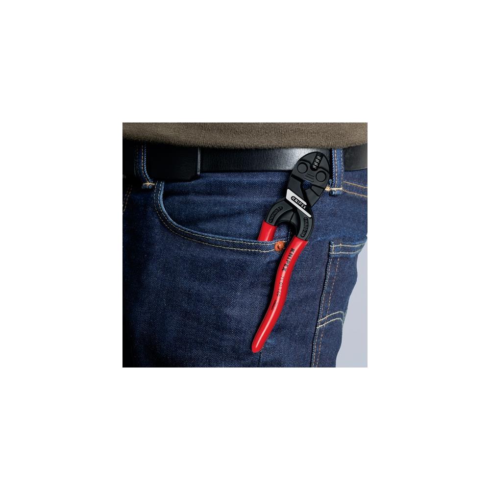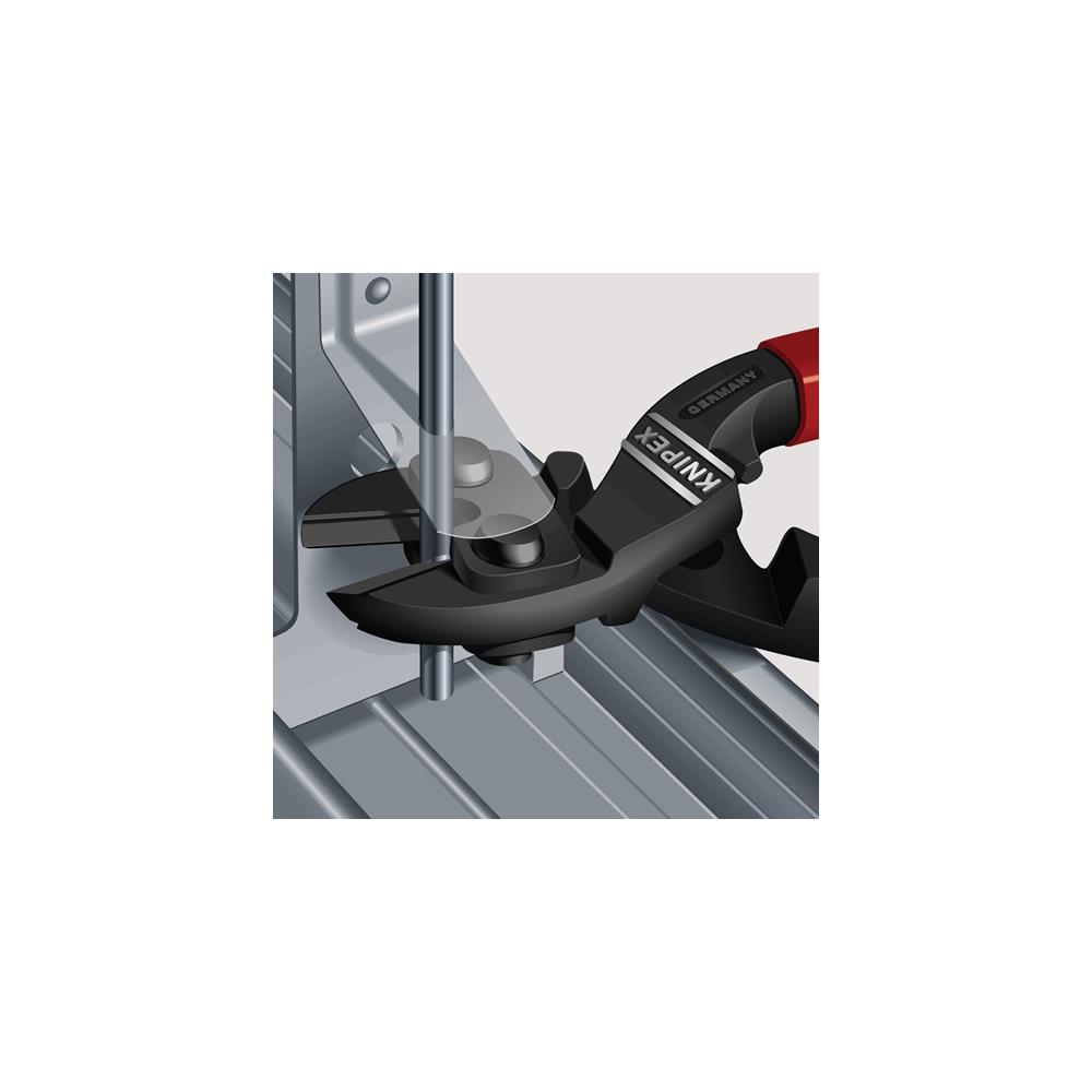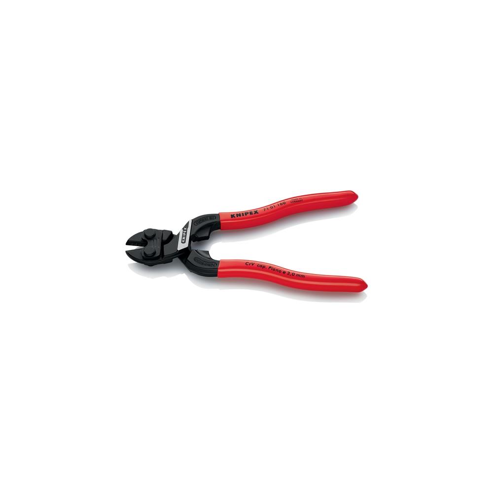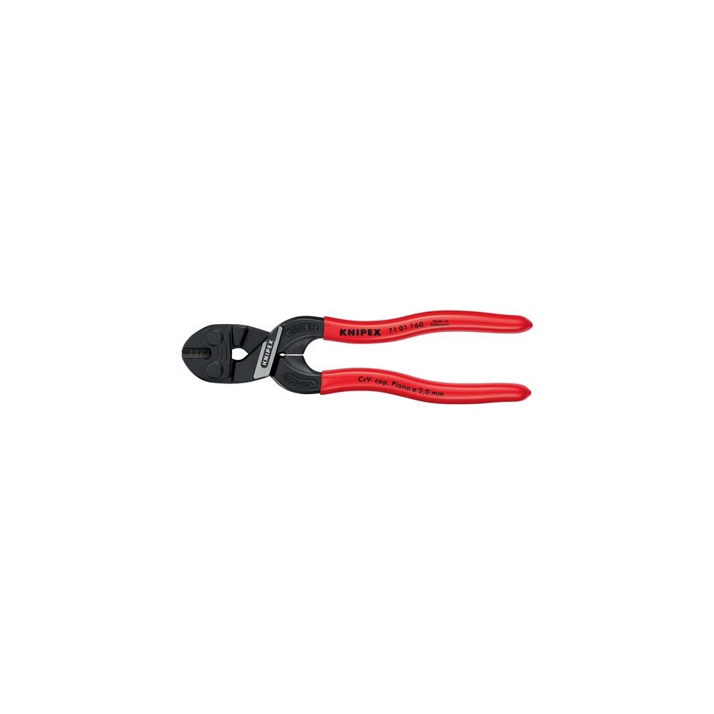 Deutschland 0202/47940 Knipex Kompaktbolzenschneider CoBolt® Länge 160 mm Kunststoffüberzug gerade 3 mm ohne Aussparung weich 5,3 mm mittel 4,4 mm hart 3,2 mm Artikel-Nr.: 71 01 160 EAN: 4003773082668 Hersteller: KNIPEX