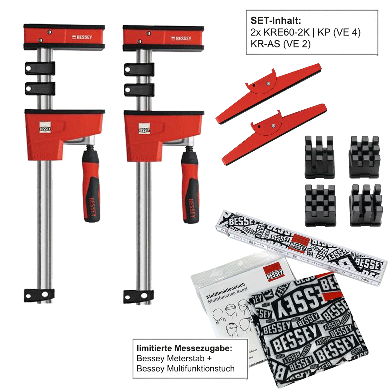 Produkteigenschaften:Adapter KR-ASschwenkbarermöglicht das problemlose Spannen an schrägen und parallelen FlächenSchwenkbereich -15° bis +15°Technische Daten:passend für: KR/KRV/KRE/KREVBackenbreite: 170 mmBackenhöhe: 25 mmMarke: BESSEYVE: 2 StückLieferung paarweiseLieferumfang:2x Bessey Korpuszwinge KRE60-2K Spannweite 600 mm Ausladung 95 mm Spreizweite min./max. 255 / 730 mm1x Bessey Rahmenpressenset KP passend für K/KR/KRV/KRE/KREV VE 4 Stück1x Beutel Bessey Adapter KR-AS passend für KR/KRV/KRE/KREV Backenbreite 170 mm VE 2 Stück1x extra Bessey Meterstab | Zollstock1x extra Bessey Multifunktionstuch