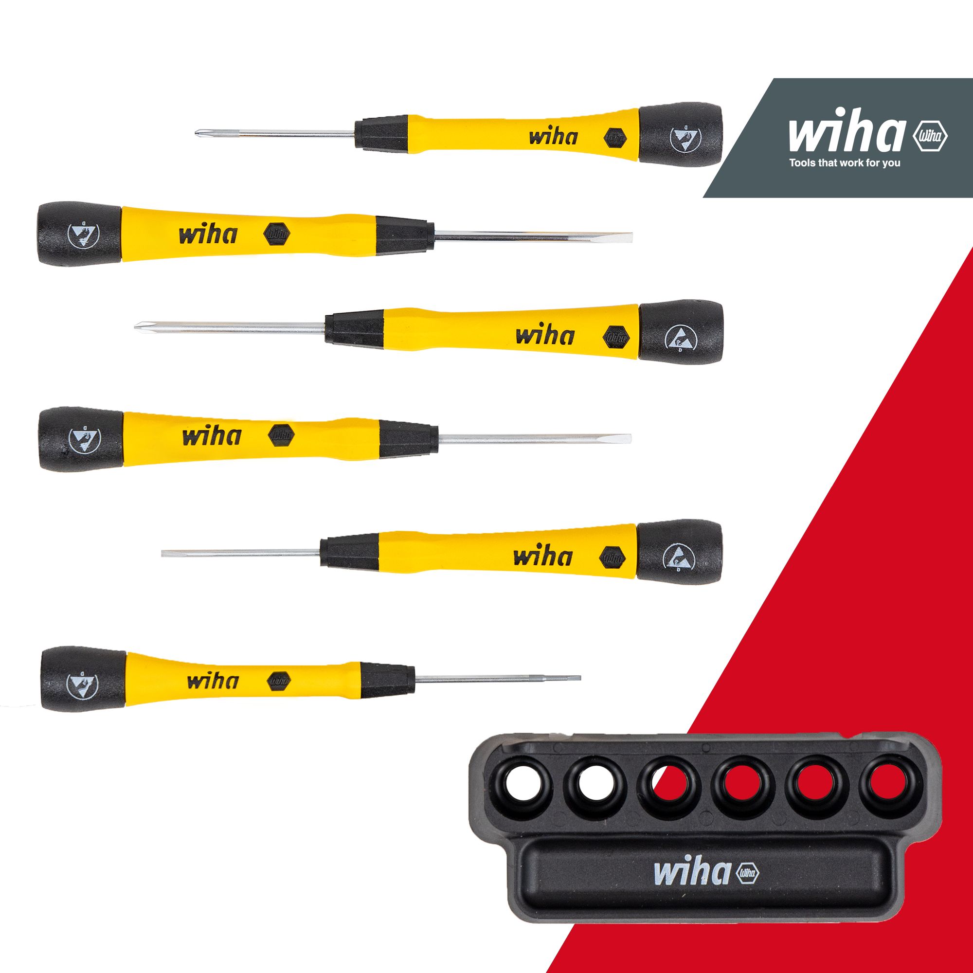 Wiha Feinschraubendreher Set PicoFinish® ESD Schlitz, Phillips 7-tlg. inkl. Halter (43707)
