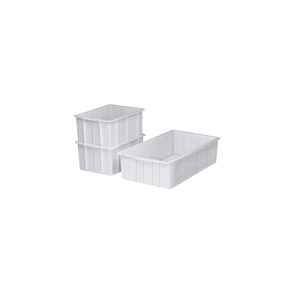 Produkteigenschaften: ND-Polyethylen für hygienisches Lagern und Transportieren bewährt in den unterschiedlichsten Einsatzbereichen platzsparend ineinander stapelbar bei nur geringem Eigengewicht äußerst formstabil und bruchfest temperaturbeständig - 30 °C bis + 40 °C (kurzzeitig bis +90 °C) lebensmittelecht weitgehend säure- und laugenbeständig leicht zu reinigen Farbe weiß Technische Daten: Inhalt: 55 l Gewicht: 2,6 kg Außenlänge: 750 mm Farbe: weiß Außenhöhe: 200 mm Außenbreite: 445 mm Ausführung: eckig Material: ND-PE Marke: CRAEMER Ausstattung: ohne GrifflochLieferumfang: 1x Craemer Kunststoffbehälter eckig 55 l ND-PE weiß L750xB445xH200mm ohne Griffloch