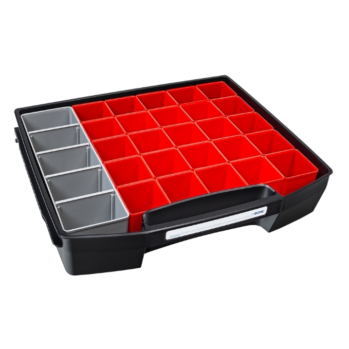 Produkteigenschaften : Bestehend aus: 25 x Insetbox A3 rot, 1 x Insetbox I3 grau inkl. 2 Trennwände (Bemerkung: Lieferung OHNE iBOXX)Technische Daten: Passend für: i-BOXX 72Lieferumfang: 1x L-BOXX i-BOXX 72 Insetboxenset A3 BSS