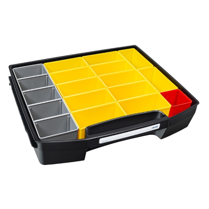 Produkteigenschaften : Bestehend aus: 1 x Insetbox A3 rot, 12 x Insetbox B3 gelb, 1 x Insetbox I3 grau inkl. 2 Trennwände (Bemerkung: Lieferung OHNE iBOXX 72)Technische Daten: Passend für: i-BOXX 72Lieferumfang: 1x L-BOXX i-BOXX 72 Insetboxenset B3 BSS