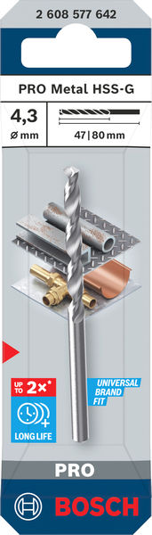 Bosch PRO Metal HSS-G Spiralbohrer, 4,3 x 47 x 80 mm