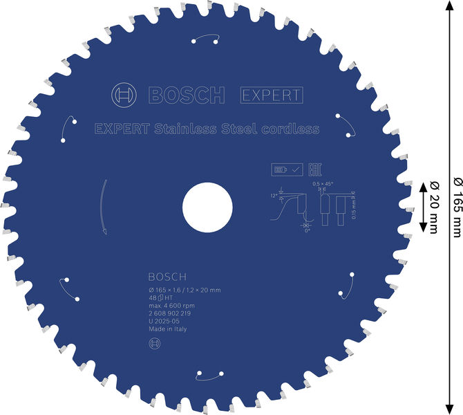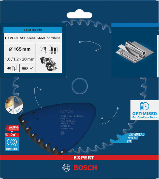 Deutschland https://www.bosch-pt.com 0711/8110 Bosch EXPERT Stainless Steel Kreissägeblatt, 165x20 mm, Z48