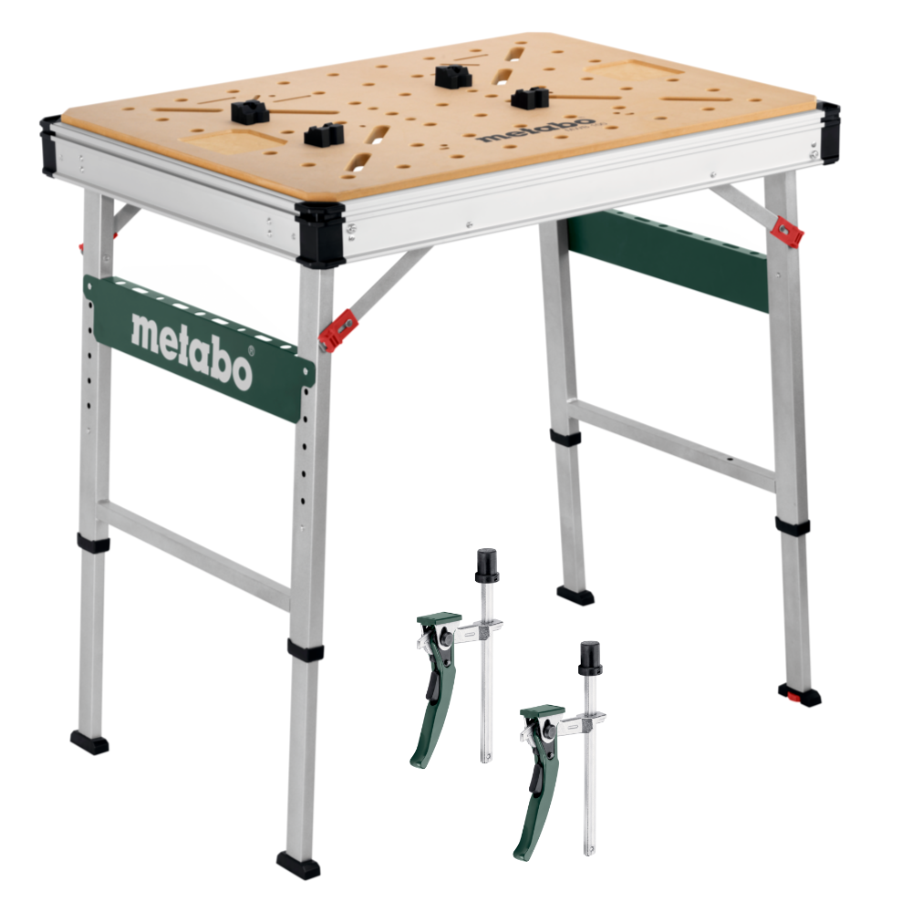Deutschland 07022/720 Metabo Multifunktionstisch MWB 100 + 2 extra Senkrecht-Schnellspannzwingen Artikel-Nr.: MWB100-A1 EAN: 4250845525565 Hersteller: METABO